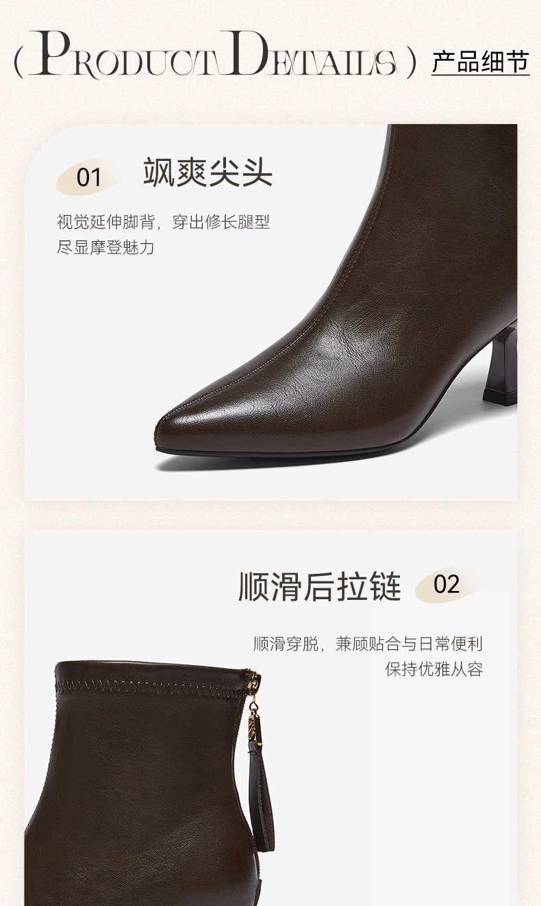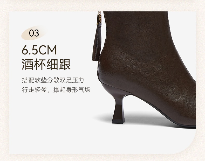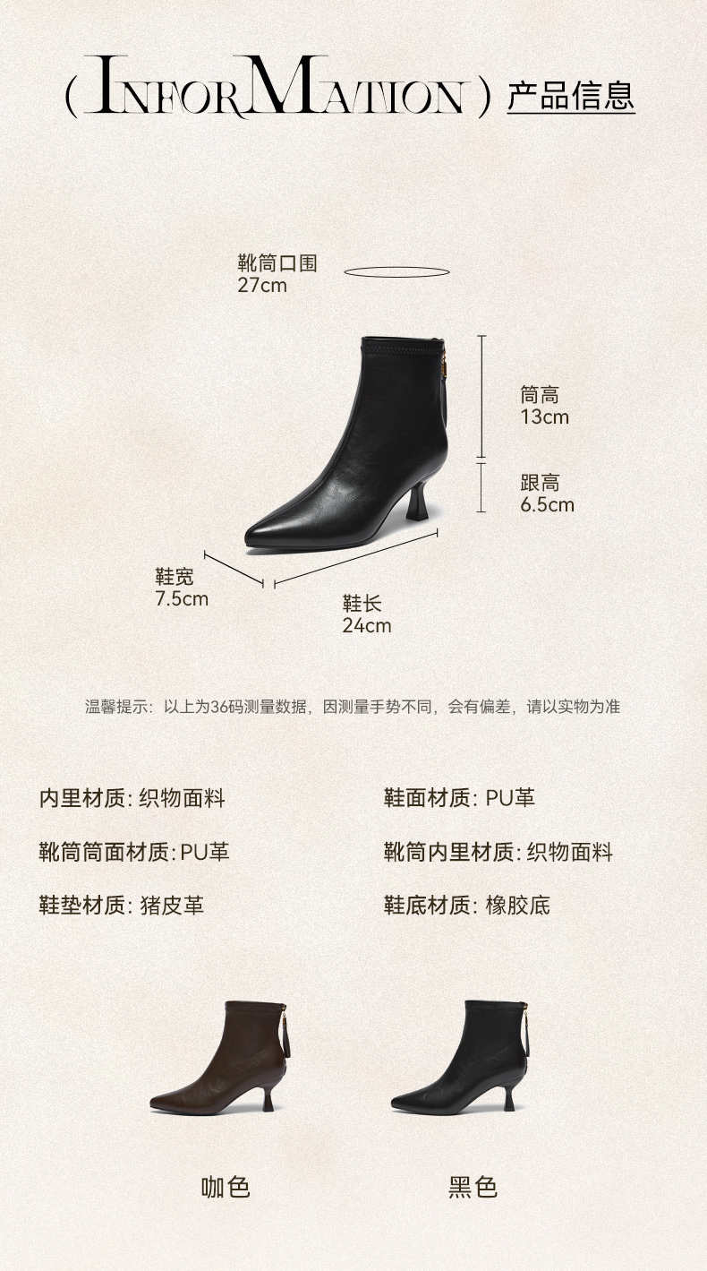 | 鞋底材质:橡胶底 | 靴筒内里材质:织物面料 | 内增高:无 | 鞋面材质:PU革 | 闭合方式:后拉链 |