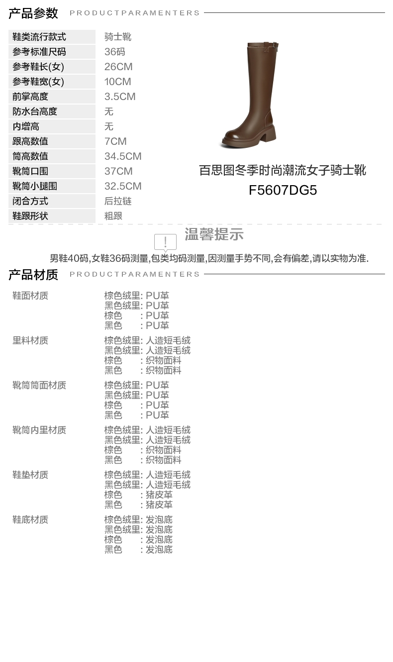 | 风格:时尚潮流 | 色系:黑色 | 跟高数值:7CM | 性别:女子 | 筒高数值:34.5CM |