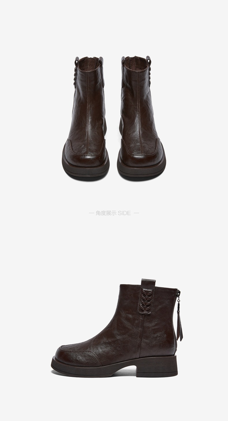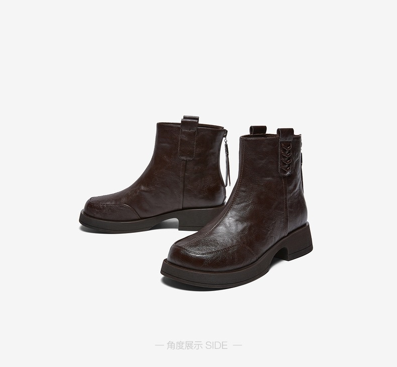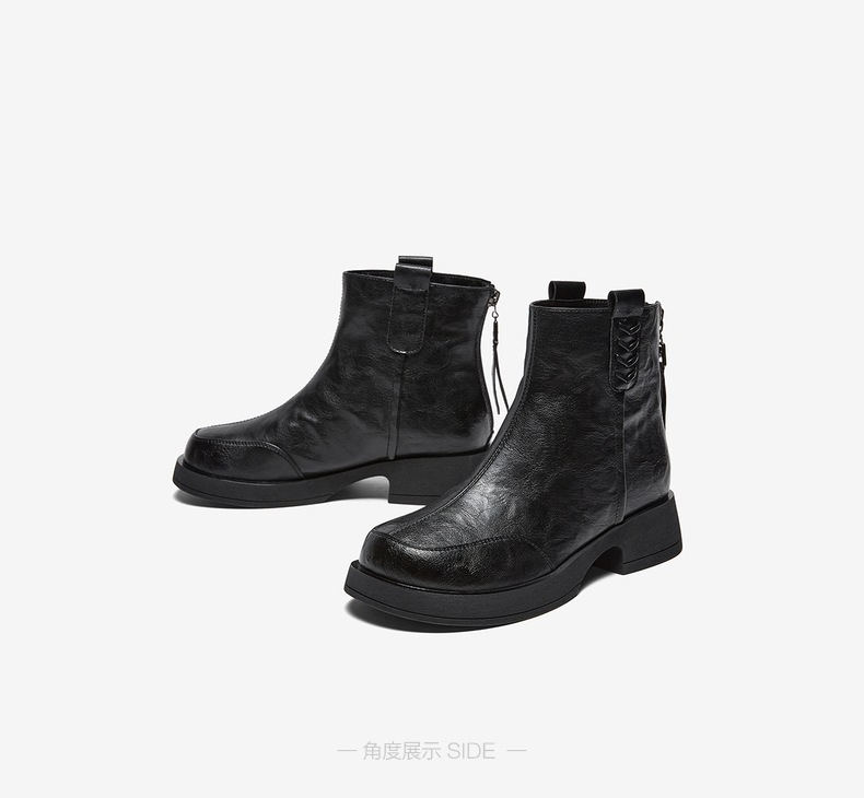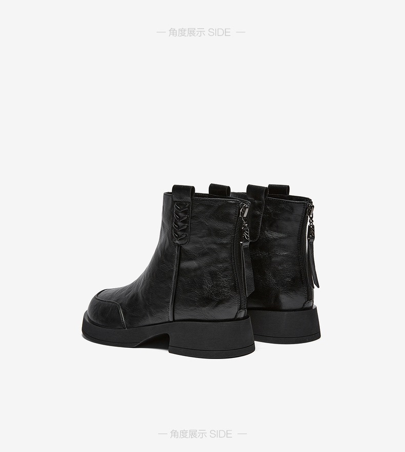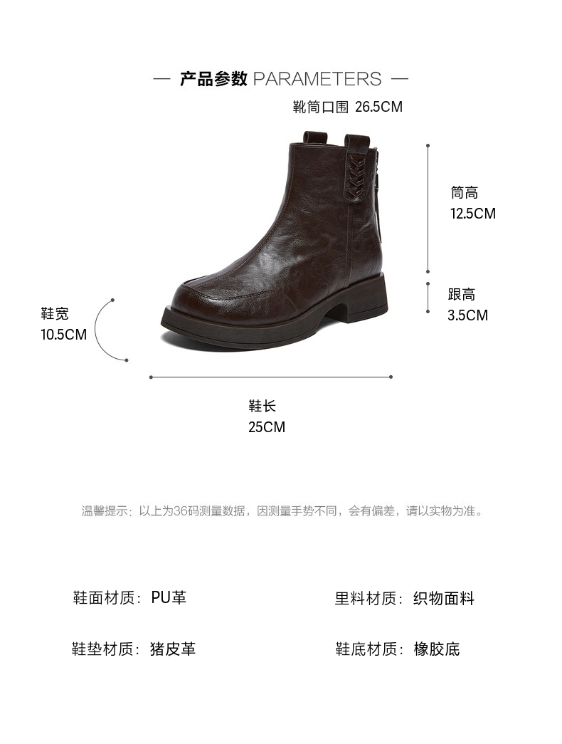 | 鞋底材质:橡胶底 | 靴筒内里材质:织物面料 | 内增高:无 | 鞋面材质:PU革 | 闭合方式:后拉链 |