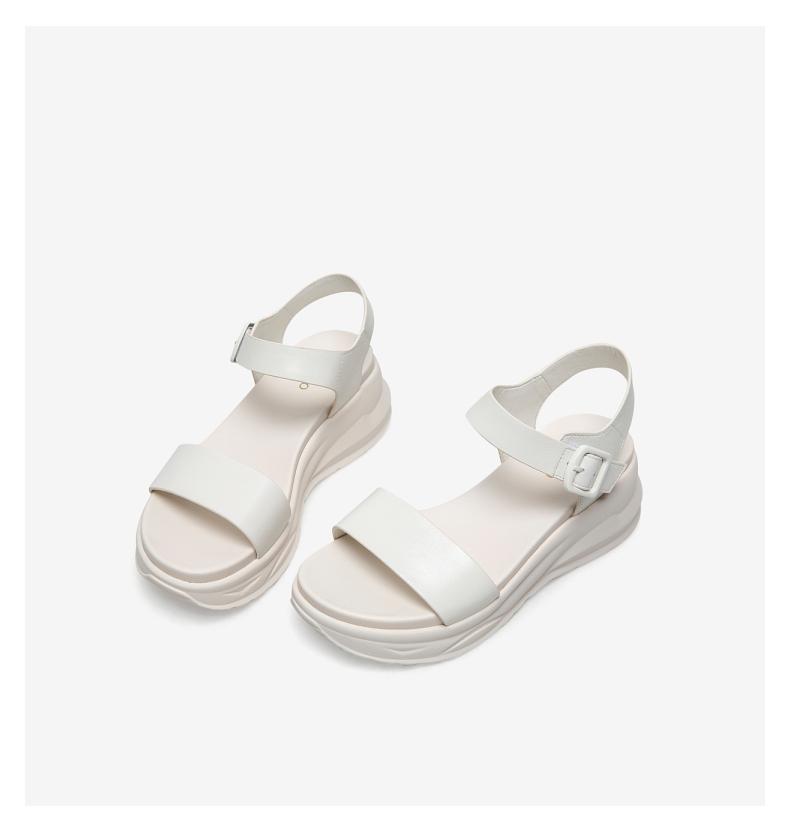 | 鞋头款式:露趾 | 鞋底材质:橡胶底 | 鞋面图案:纯色 | 鞋跟形状:厚底 | 鞋面材质:牛皮革 |