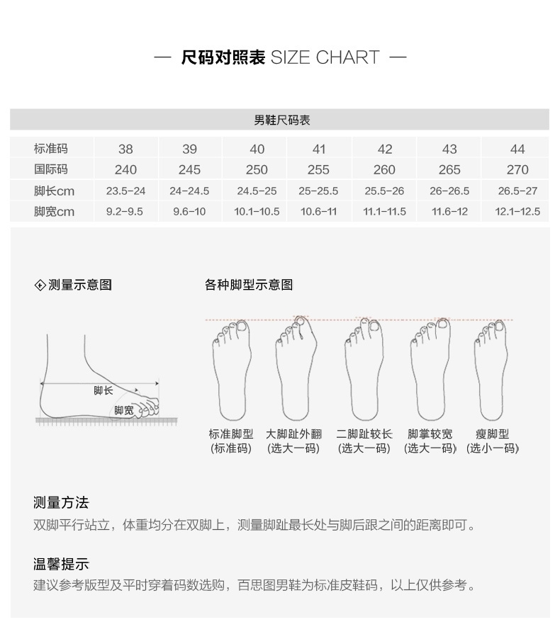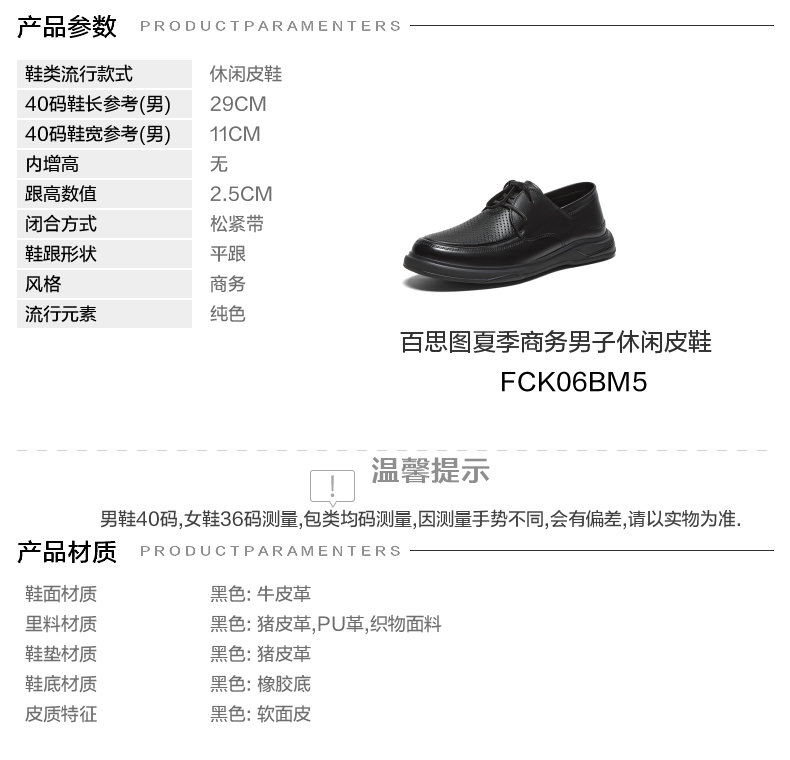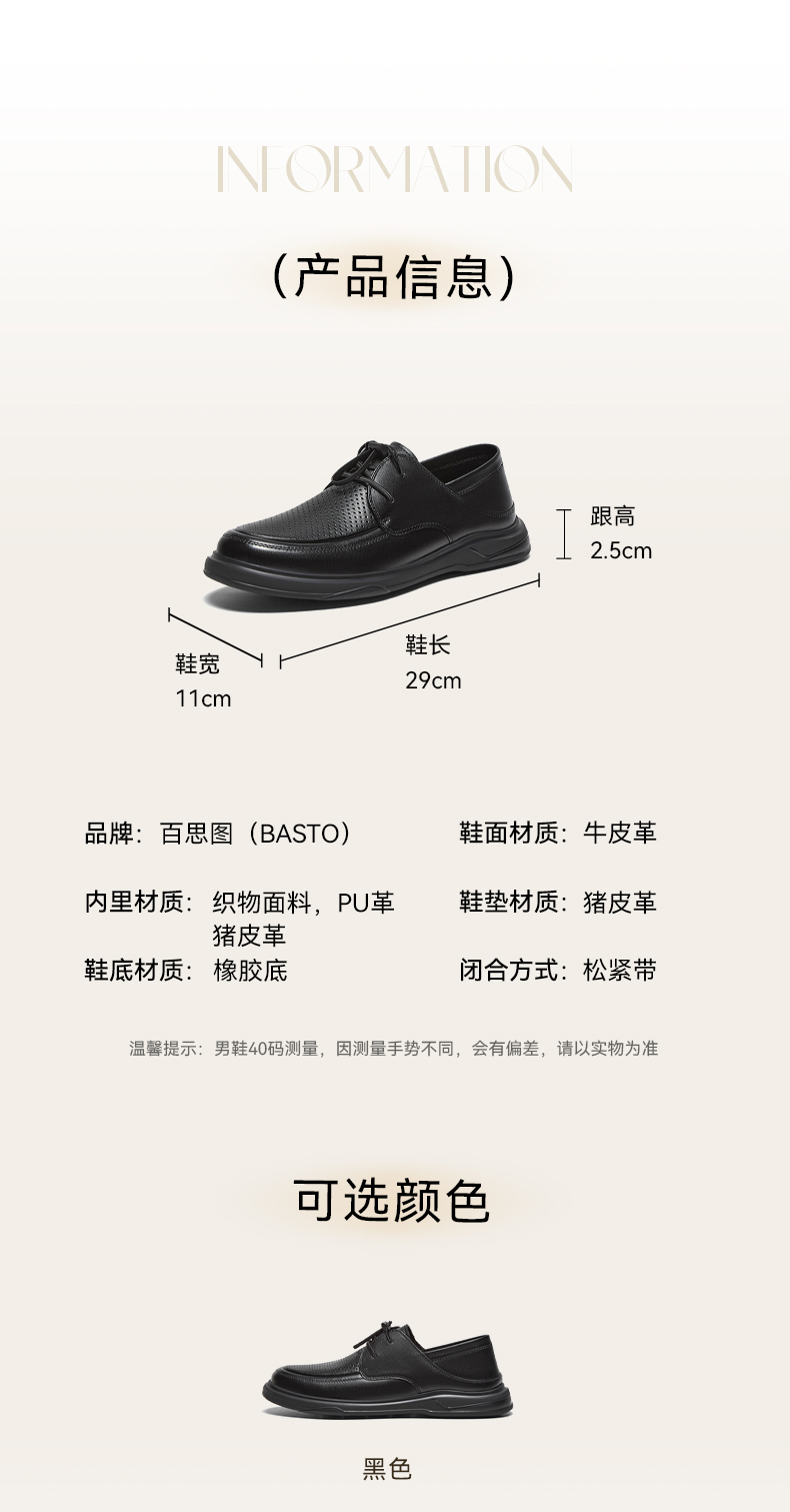 | 风格:商务 | 色系:黑色 | 跟高数值:2.5CM | 40码鞋宽参考(男):11CM | 性别:男子 |