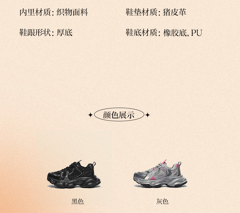 | 风格分类:老爹鞋 | 上市时间:2024年春季 | 生产/经销/进口厂家:丽荣鞋业(深圳)有限公司 | 鞋类流行款式:老爹鞋 | 鞋头款式:圆头 |