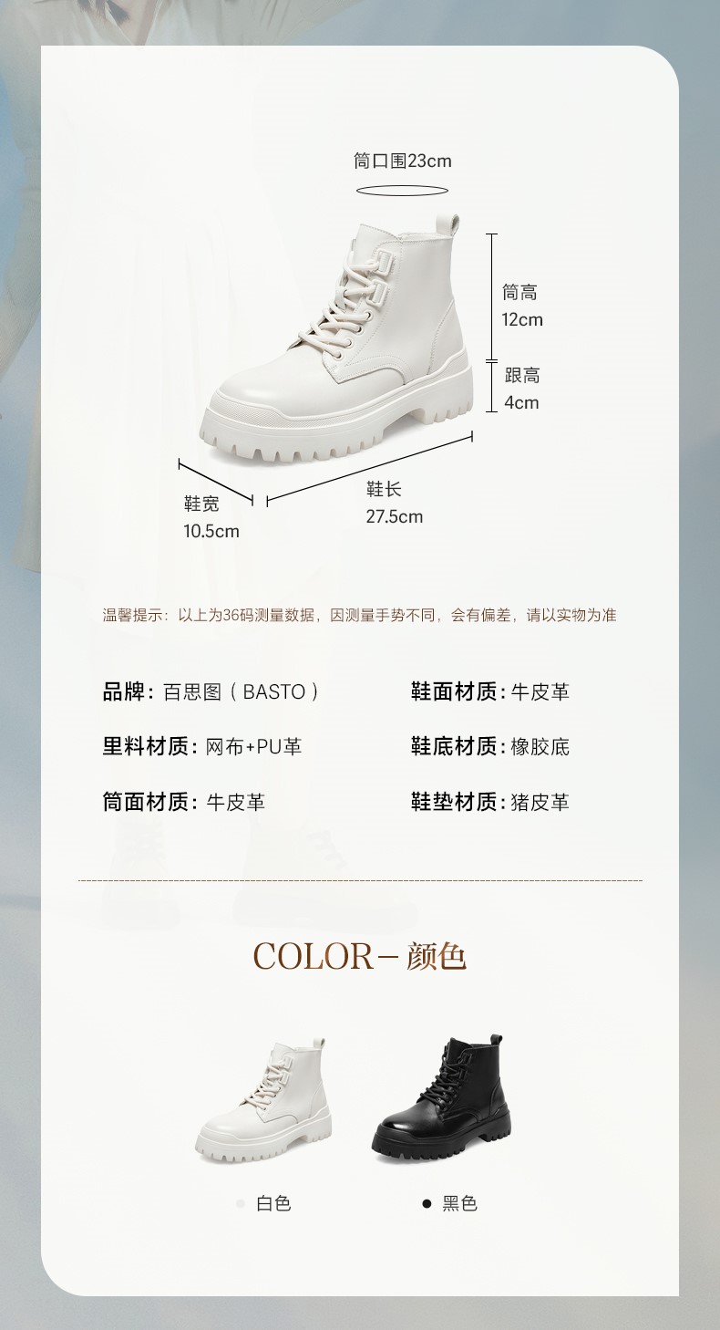| 参考鞋宽(女):10.5CM | 风格:英伦 | 色系:黑色 | 跟高数值:4CM | 筒高数值:12CM |