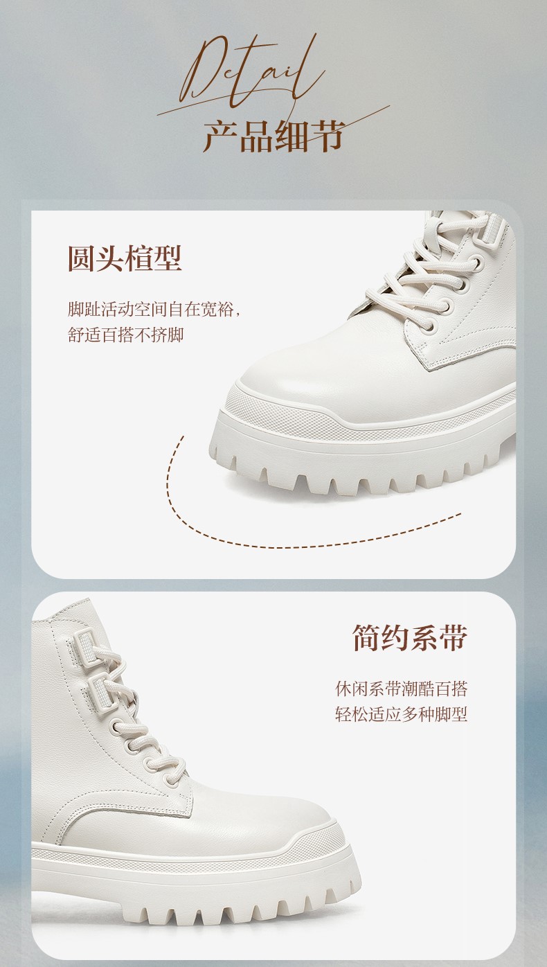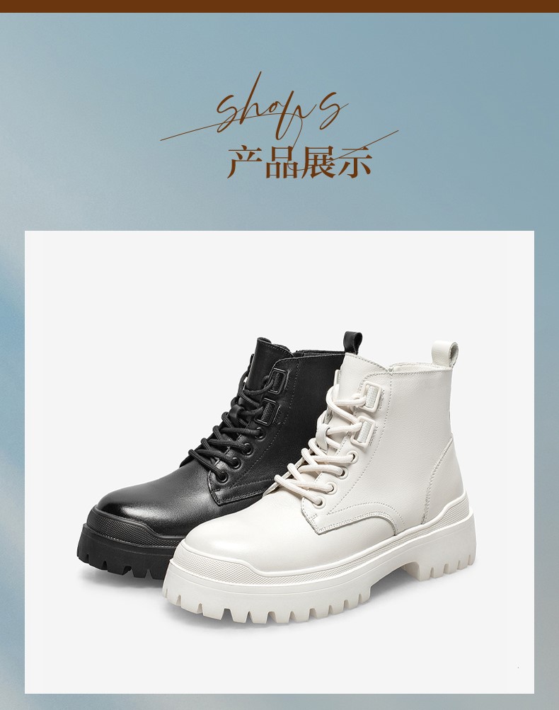 | 鞋底材质:橡胶底 | 靴筒内里材质:PU革织物面料 | 内增高:无 | 鞋面材质:牛皮革 | 闭合方式:系带侧拉链 |