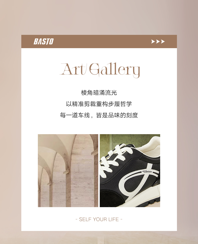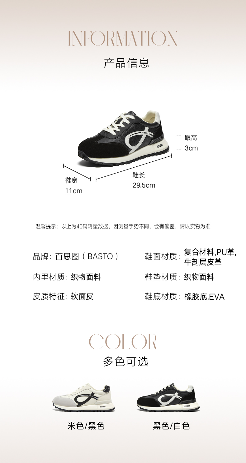 BASTO(百思图),品牌拥有17年历史,秉承优雅、甜美、清新的设计理念,主张“好嫁风”的产品风格,将甜美俏丽的少女情怀融合优雅气质的时尚品味,塑造出唯美优雅、受欢迎的女鞋款式。主打以女性温柔与亲和力为特色的流行时尚产品,糅合雅致又富有亲和力的裸粉色调,淑媛端庄、清新甜美。目前品牌已开设线下门店达1400多家。