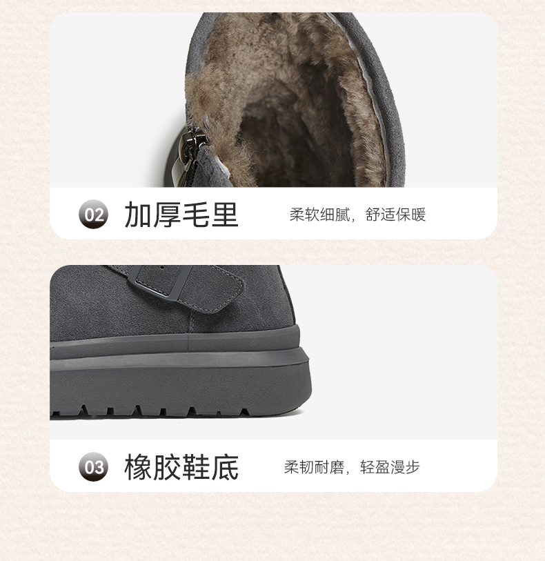 | 闭合方式:套脚 | 40码鞋宽参考(男):11CM | 靴筒口围:32CM | 上市时间:2025年冬季 | 鞋类流行款式:雪地靴 |