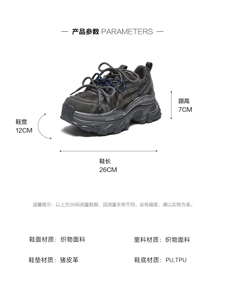 | 配跟:无 | 上市时间:2026年春季 | 鞋类流行款式:老爹鞋 | 鞋头款式:圆头 | 鞋面图案:纯色 |