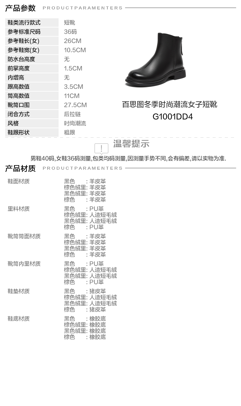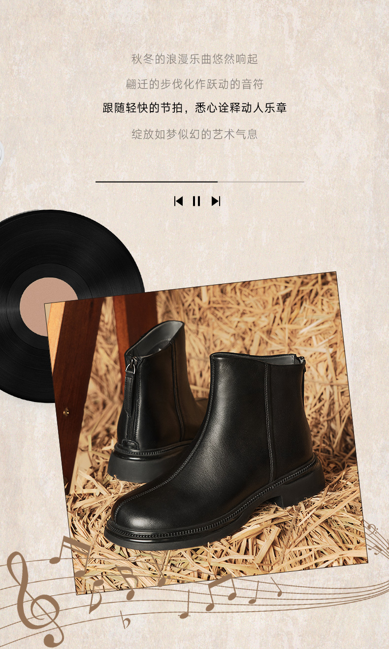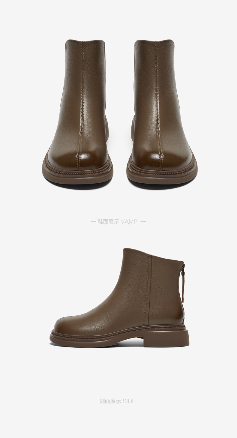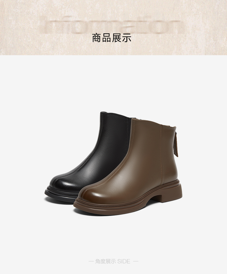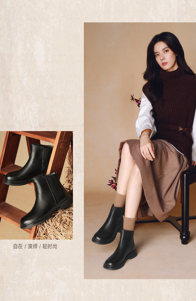 | 鞋类流行款式:短靴 | 鞋头款式:圆头 | 执行标准:舒适上班鞋Q/LR001-2023 | 跟高范围:低跟鞋(小于3CM) | 鞋面图案:纯色 |