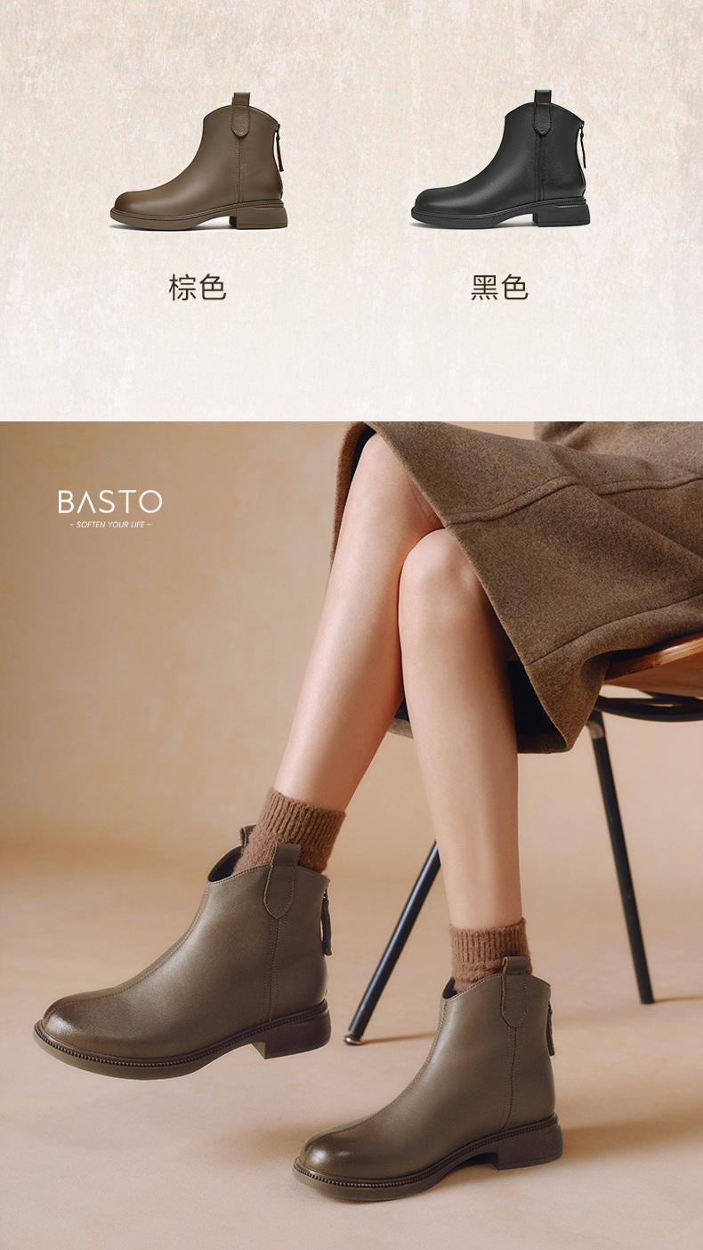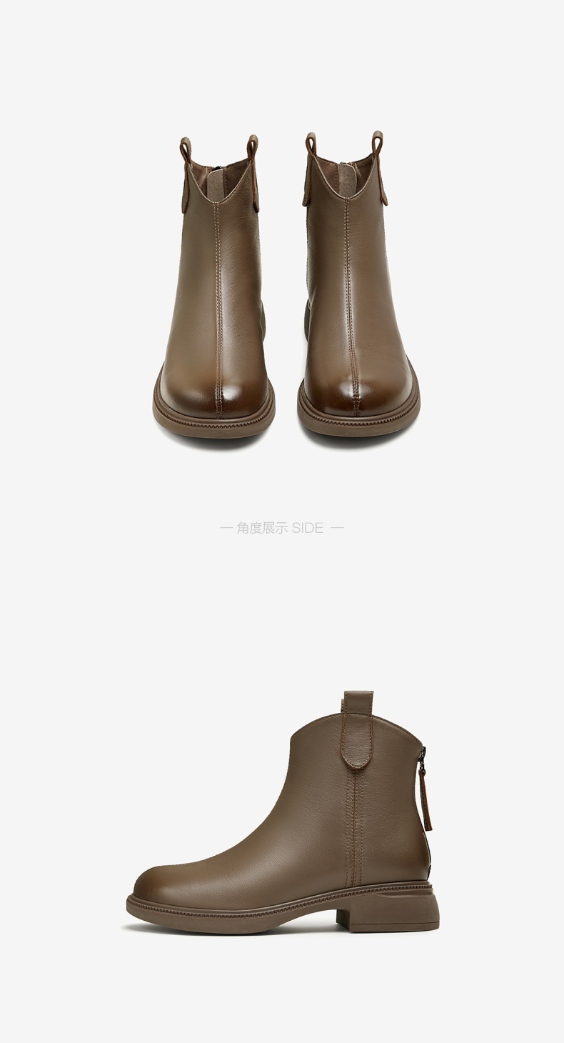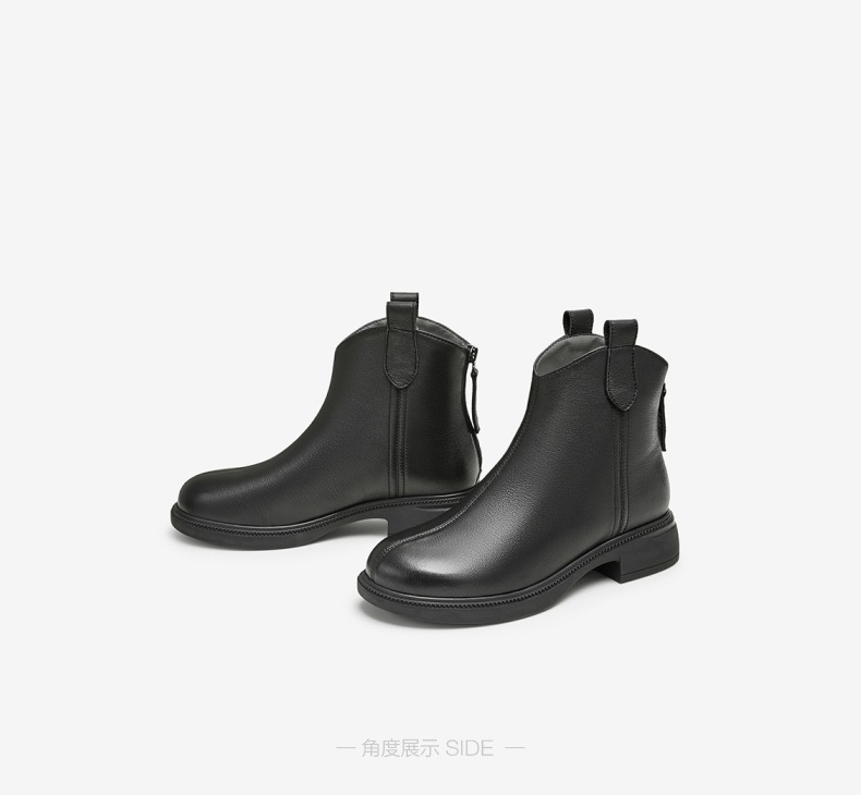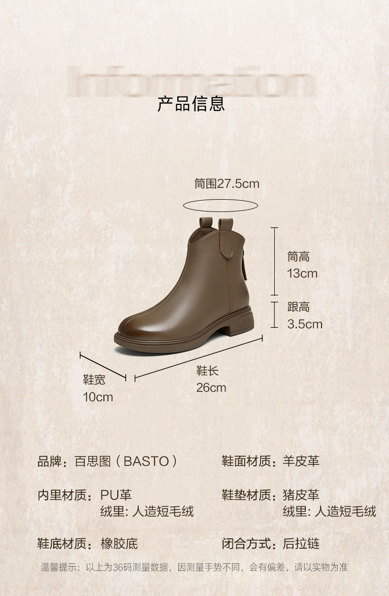 | 鞋底材质:橡胶底 | 靴筒内里材质:PU革 | 内增高:无 | 鞋面材质:羊皮革 | 闭合方式:后拉链 |