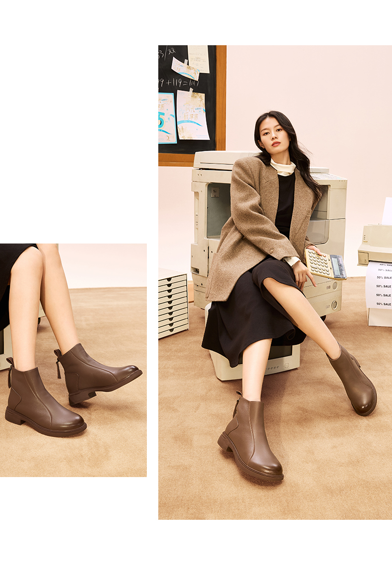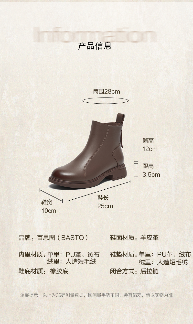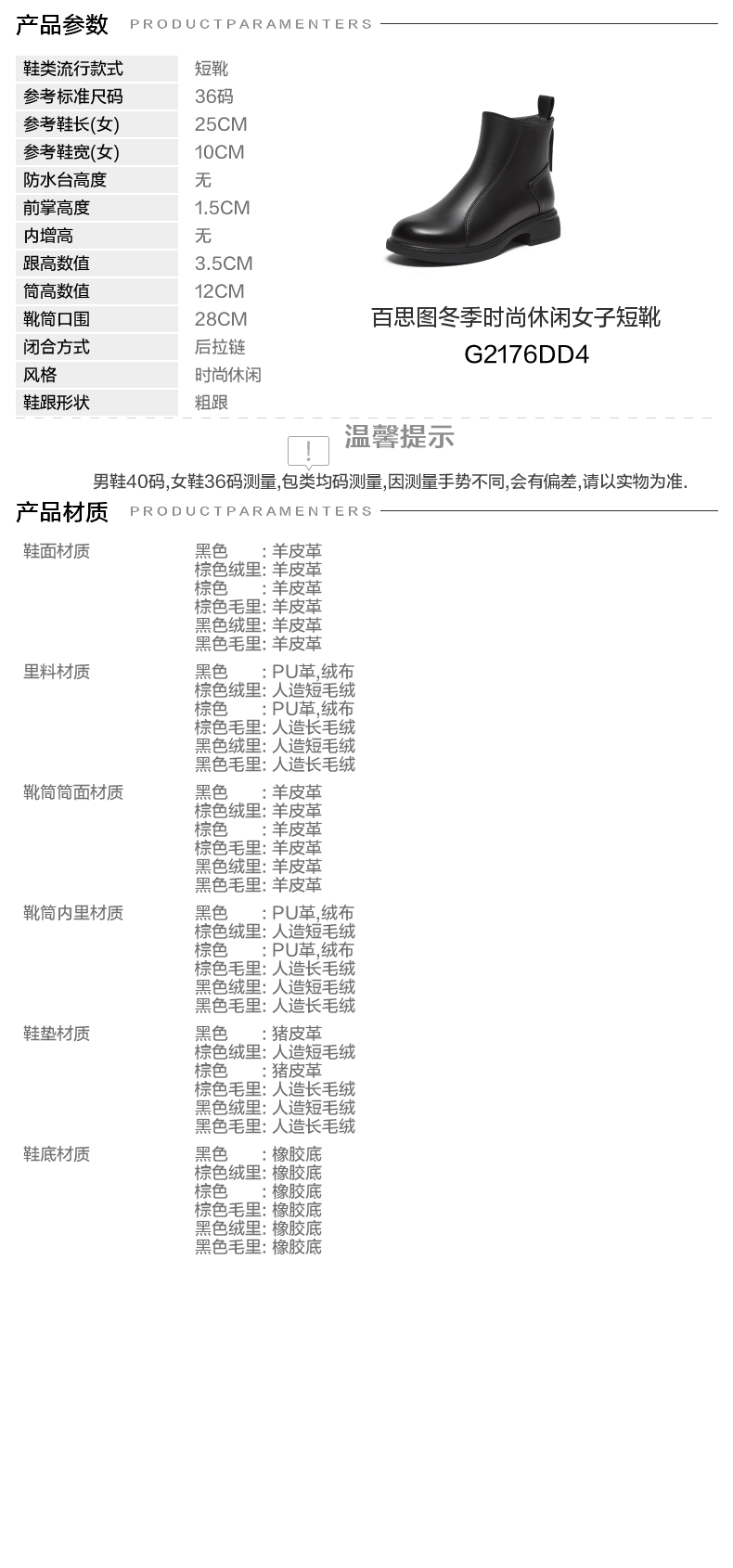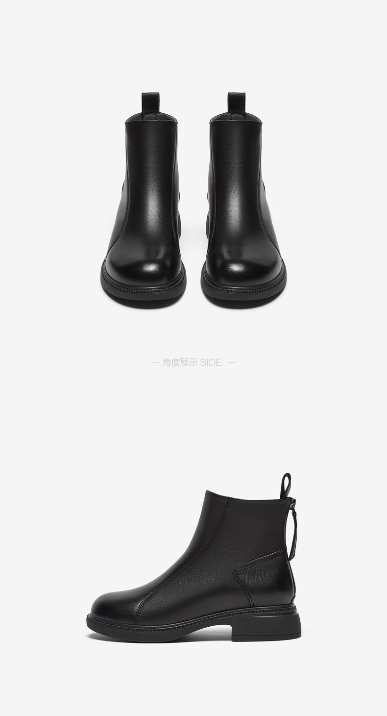 | 鞋类流行款式:短靴短靴 | 鞋头款式:圆头 | 执行标准:舒适上班鞋Q/LR001-2023 | 跟高范围:中跟鞋(3-5CM) | 鞋面图案:纯色 |