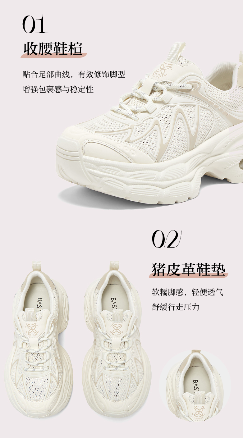 BASTO(百思图),品牌拥有17年历史,秉承优雅、甜美、清新的设计理念,主张“好嫁风”的产品风格,将甜美俏丽的少女情怀融合优雅气质的时尚品味,塑造出唯美优雅、受欢迎的女鞋款式。主打以女性温柔与亲和力为特色的流行时尚产品,糅合雅致又富有亲和力的裸粉色调,淑媛端庄、清新甜美。目前品牌已开设线下门店达1400多家。