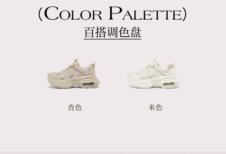 | 闭合方式:系带 | 风格:运动 | 跟高数值:6.5CM | 色系:米色 | 配跟:无 |