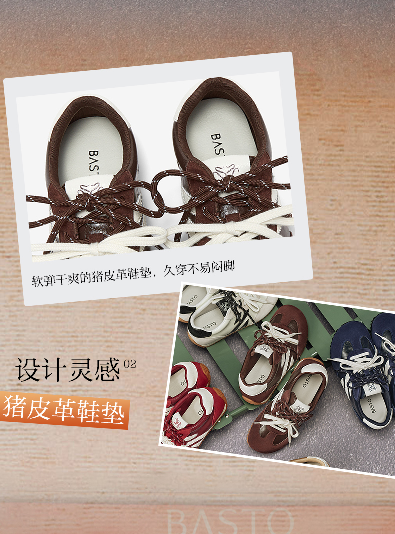 BASTO(百思图),品牌拥有17年历史,秉承优雅、甜美、清新的设计理念,主张“好嫁风”的产品风格,将甜美俏丽的少女情怀融合优雅气质的时尚品味,塑造出唯美优雅、受欢迎的女鞋款式。主打以女性温柔与亲和力为特色的流行时尚产品,糅合雅致又富有亲和力的裸粉色调,淑媛端庄、清新甜美。目前品牌已开设线下门店达1400多家。