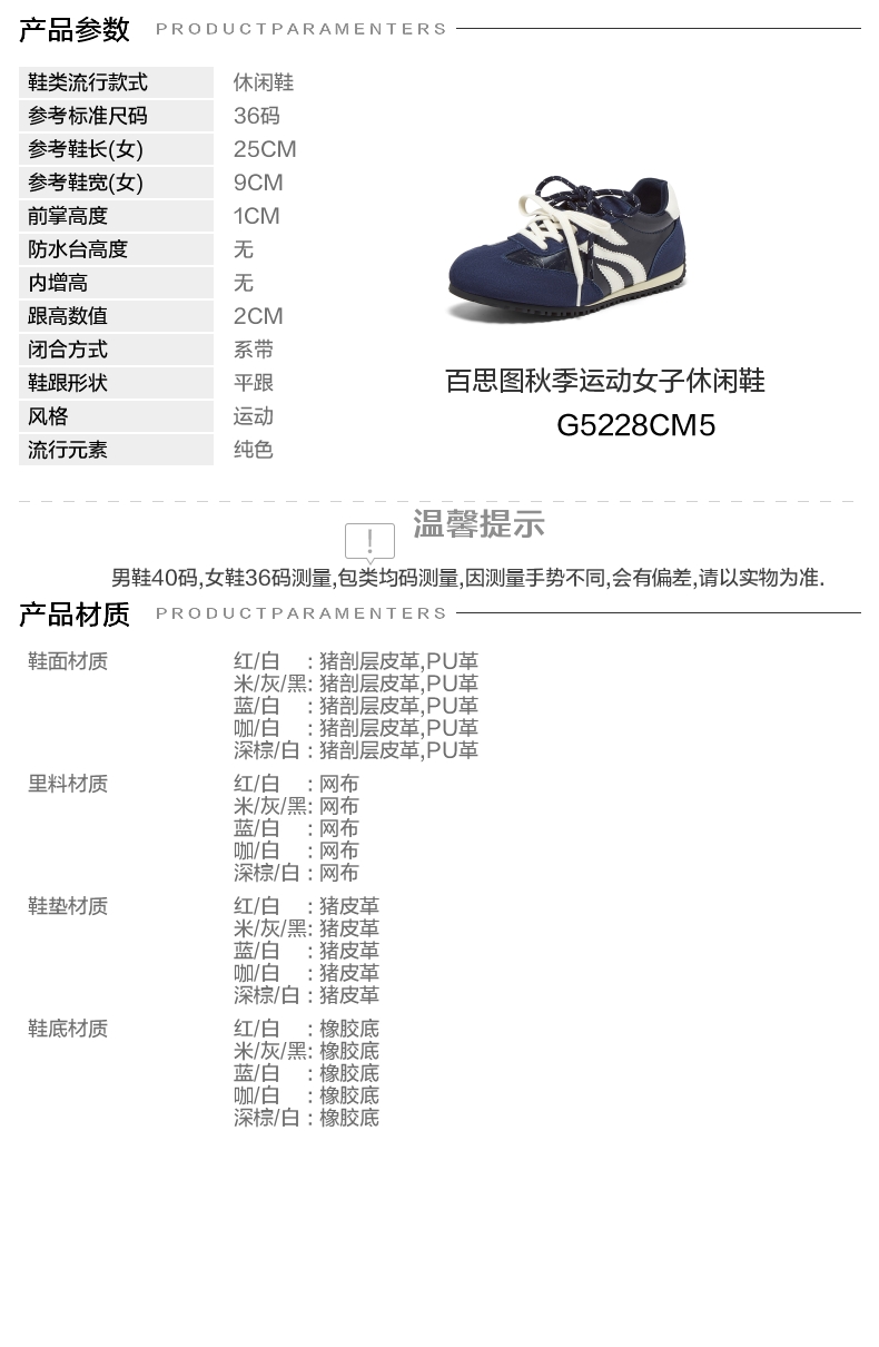 | 鞋垫材质:猪皮革 | 款式季节:秋季 | 前掌高度:1CM | 皮质特征:无 | 防水台高度:无 |