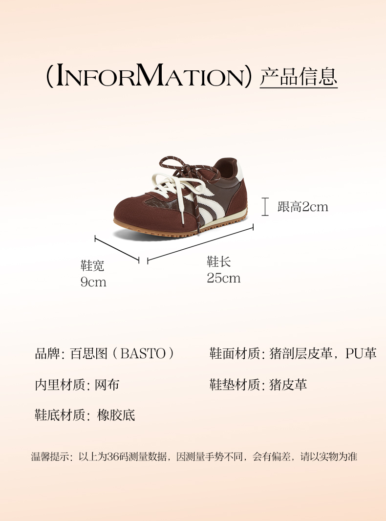 BASTO(百思图),品牌拥有17年历史,秉承优雅、甜美、清新的设计理念,主张“好嫁风”的产品风格,将甜美俏丽的少女情怀融合优雅气质的时尚品味,塑造出唯美优雅、受欢迎的女鞋款式。主打以女性温柔与亲和力为特色的流行时尚产品,糅合雅致又富有亲和力的裸粉色调,淑媛端庄、清新甜美。目前品牌已开设线下门店达1400多家。