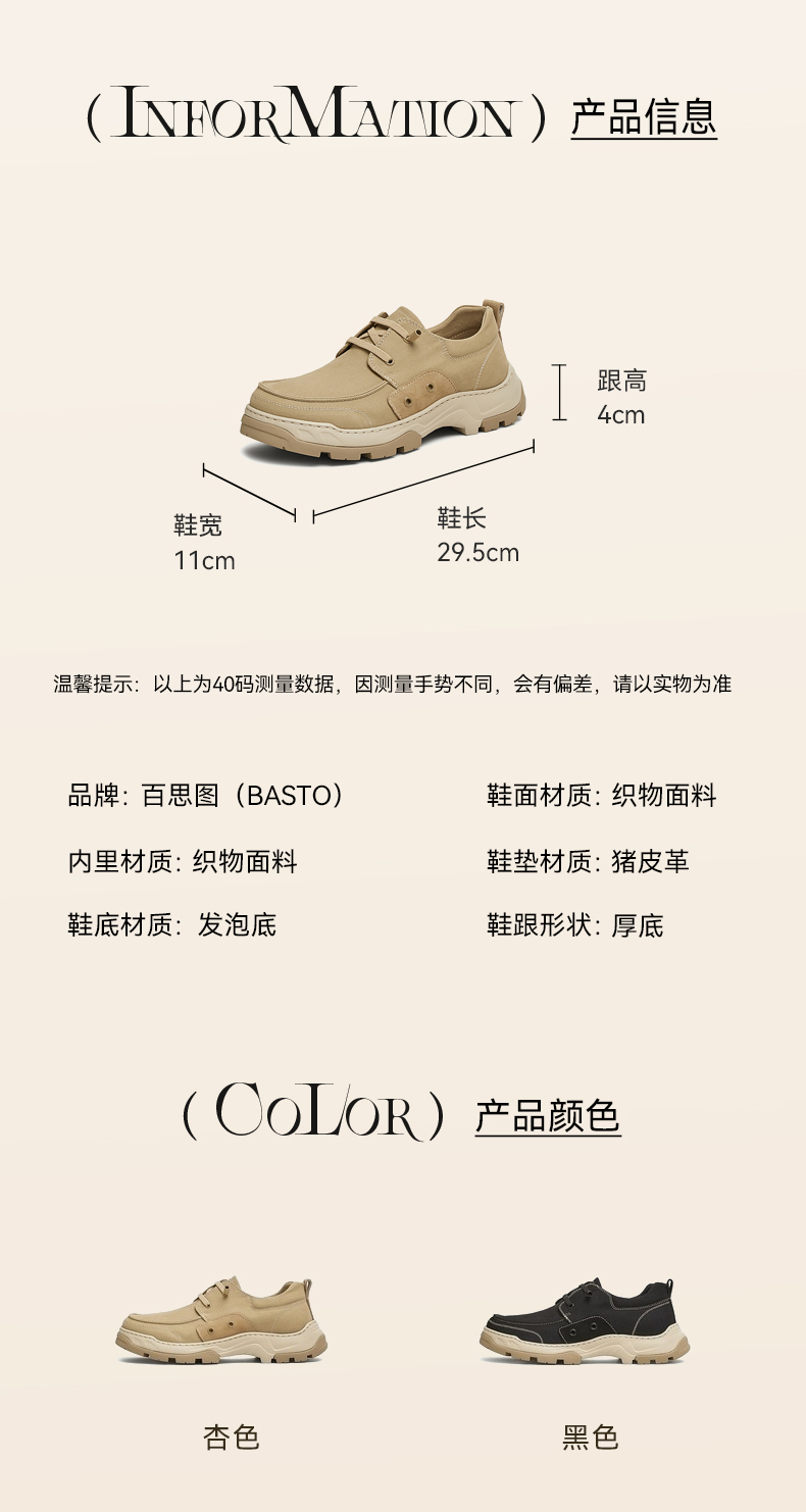 | 跟高数值:4CM | 性别:男子 | 里料材质:织物面料 | 内里:纺织品 | 制鞋工艺:车线胶粘 |