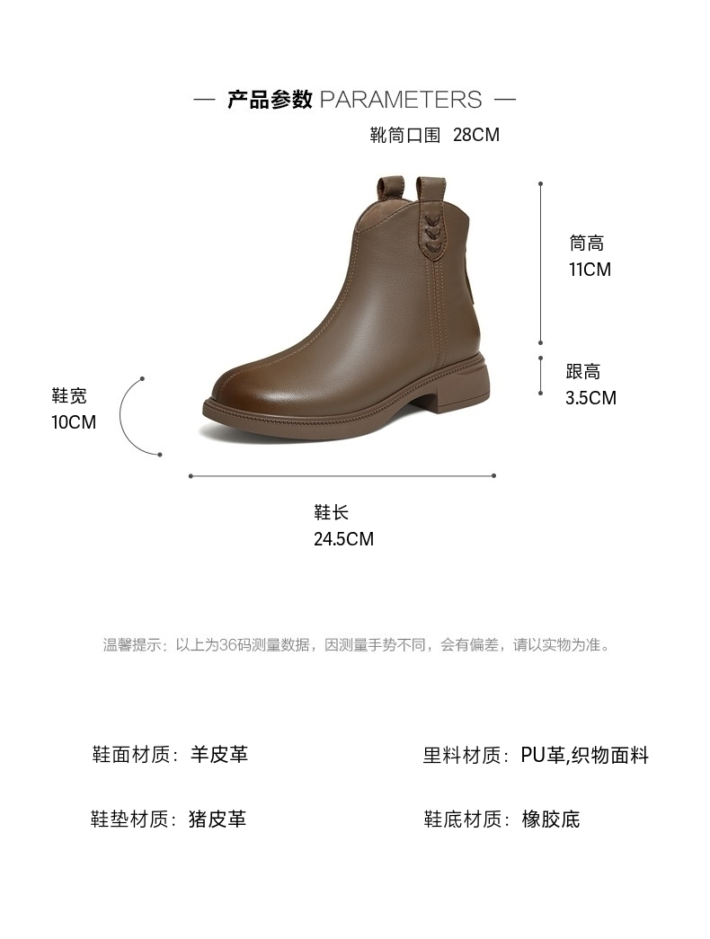 | 帮面材质:羊皮 | 配跟:无 | 靴筒口围:28CM | 上市时间:2025年冬季 | 鞋类流行款式:短靴 |