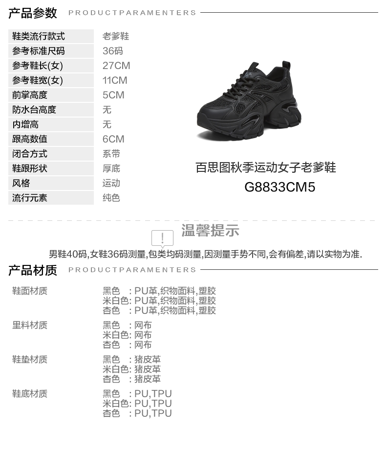 | 配跟:无 | 上市时间:2025年秋季 | 鞋类流行款式:老爹鞋 | 鞋头款式:圆头 | 鞋面图案:纯色 |