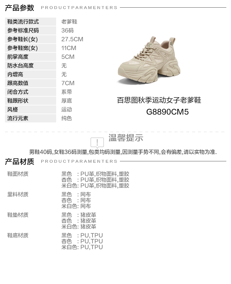 | 配跟:无 | 上市时间:2025年秋季 | 鞋类流行款式:老爹鞋 | 鞋头款式:圆头 | 鞋面图案:纯色 |