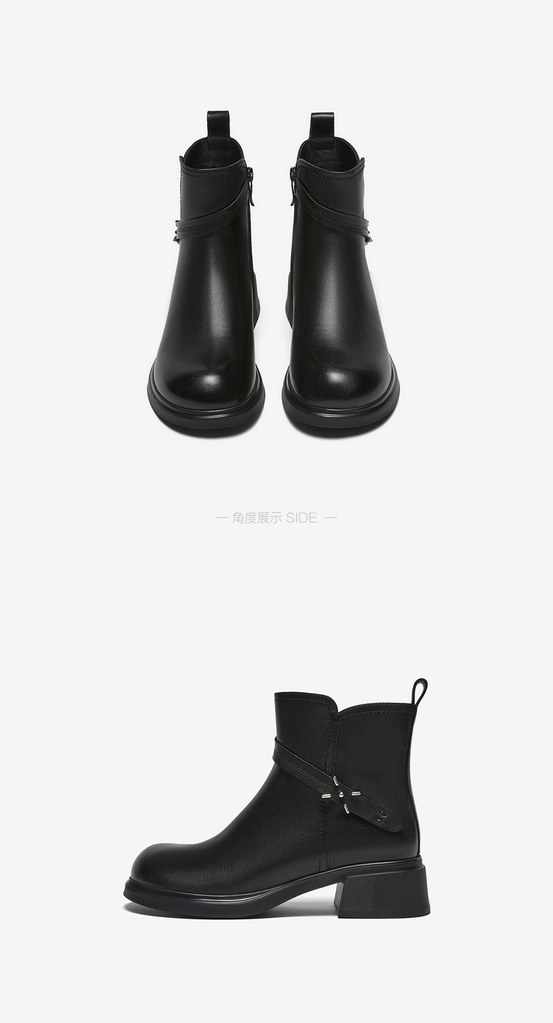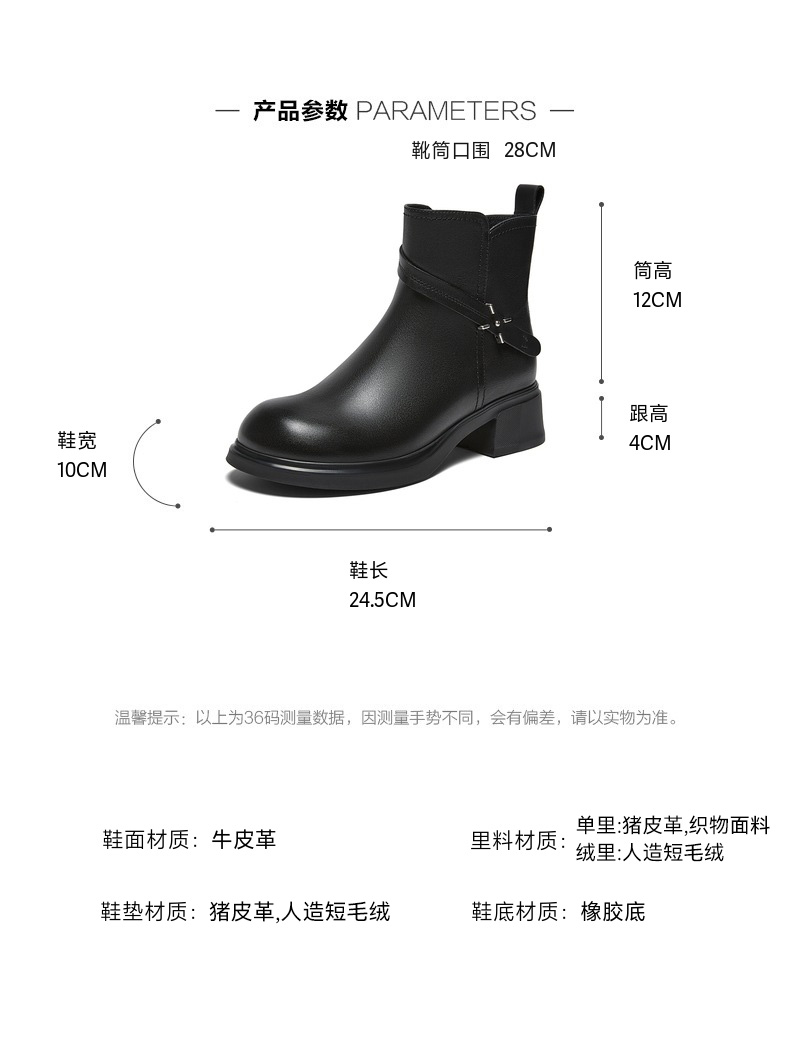 | 帮面材质:牛皮革 | 配跟:无 | 靴筒口围:28CM | 上市时间:2025年冬季 | 鞋类流行款式:短靴 |
