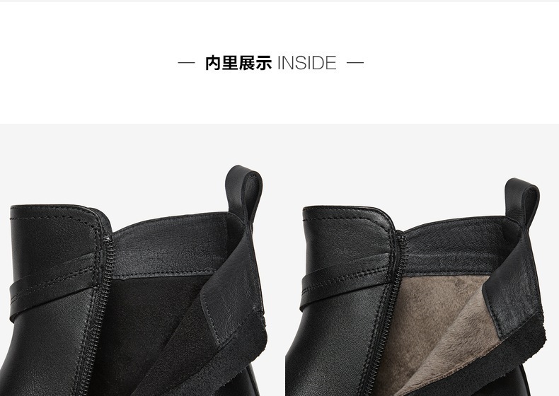 | 鞋底材质:橡胶底 | 靴筒内里材质:织物面料猪皮革 | 内增高:无 | 鞋面材质:牛皮革 | 闭合方式:侧拉链 |