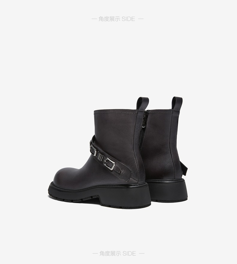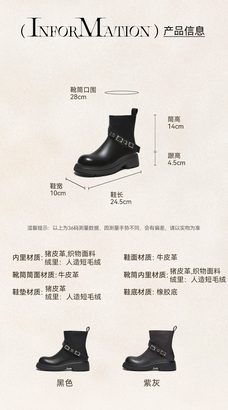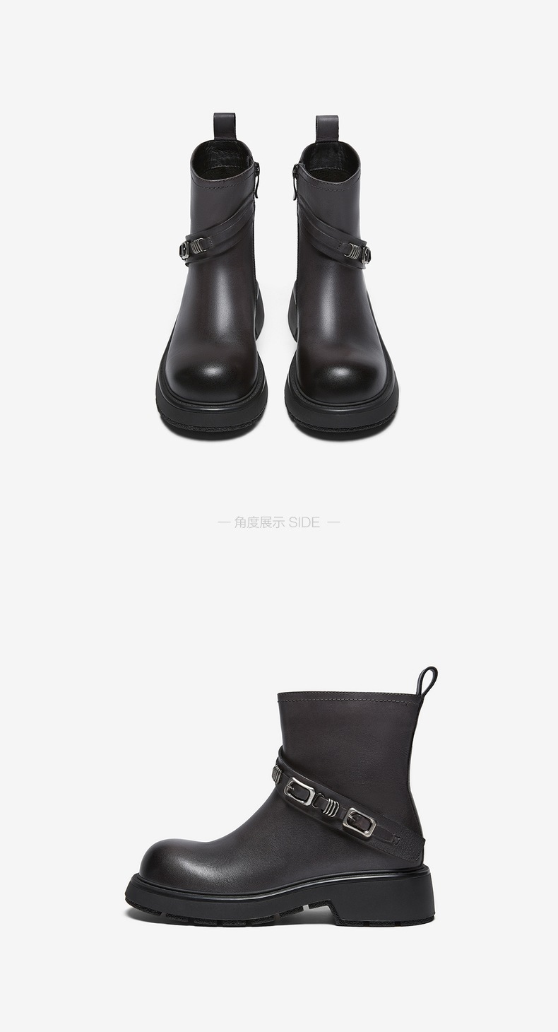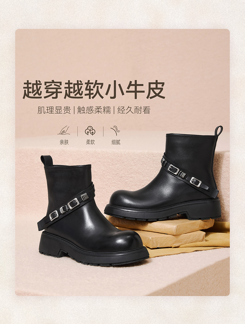 | 帮面材质:牛皮革 | 配跟:无 | 靴筒口围:28CM | 上市时间:2025年冬季 | 鞋类流行款式:短靴 |