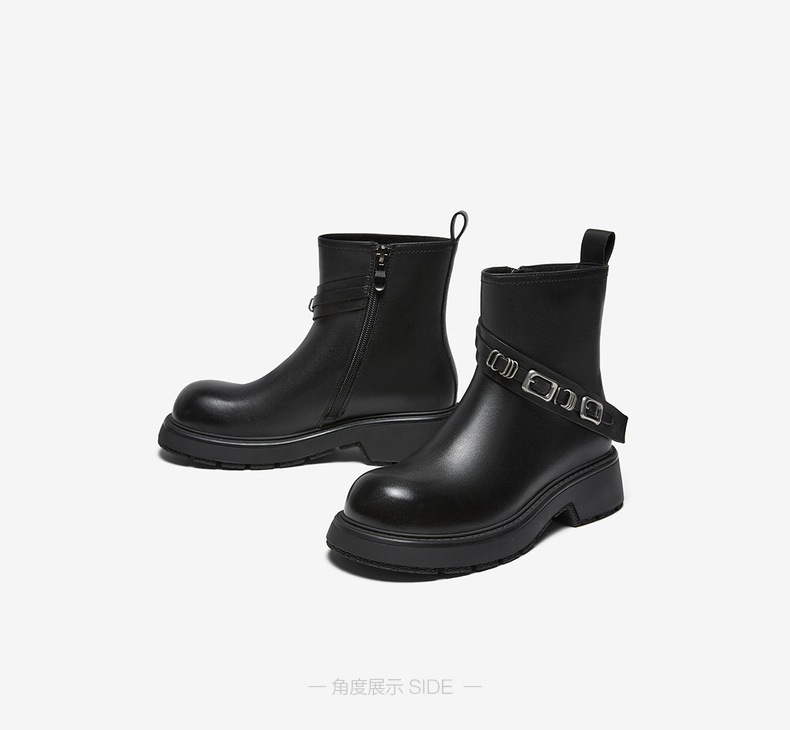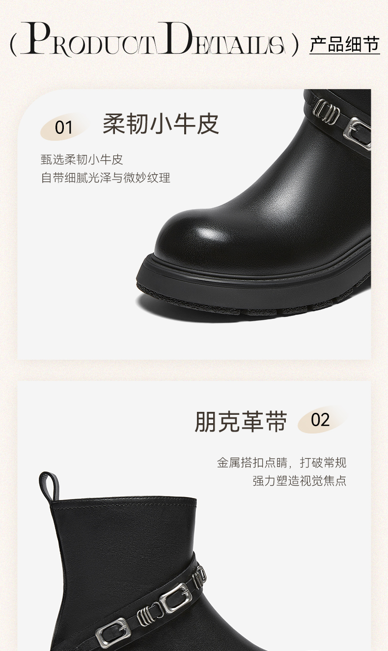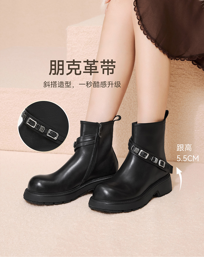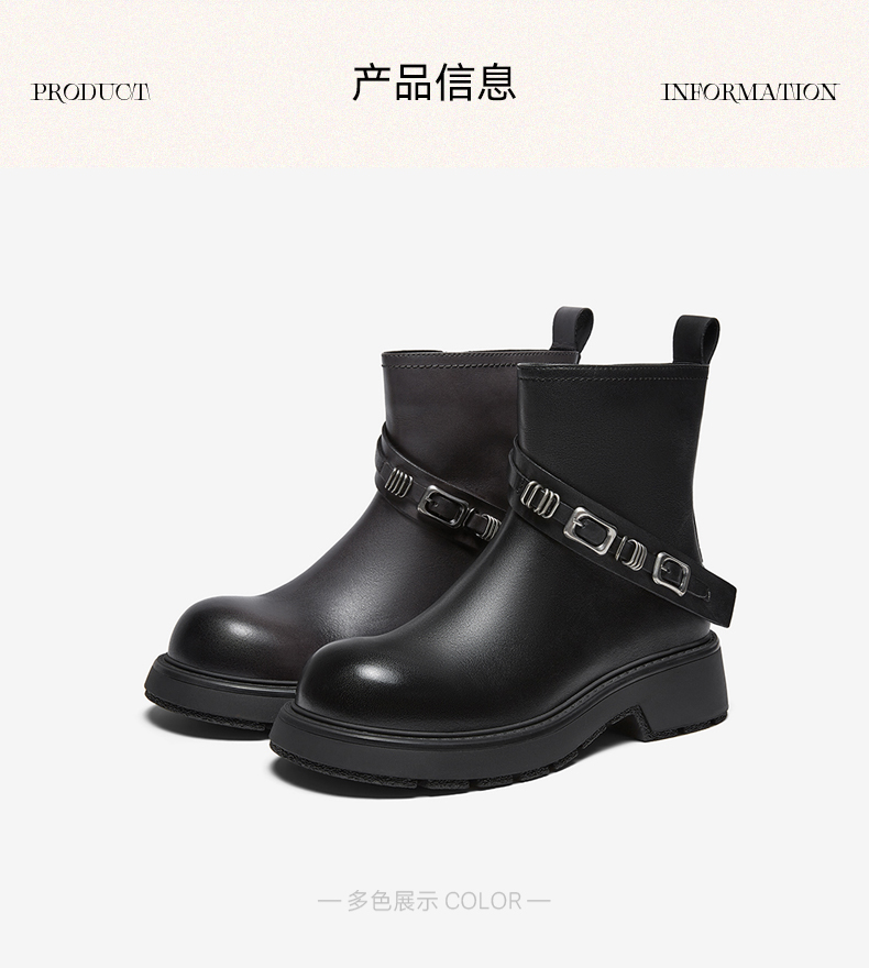 | 帮面材质:牛皮革 | 配跟:无 | 靴筒口围:28CM | 上市时间:2025年冬季 | 鞋类流行款式:短靴 |