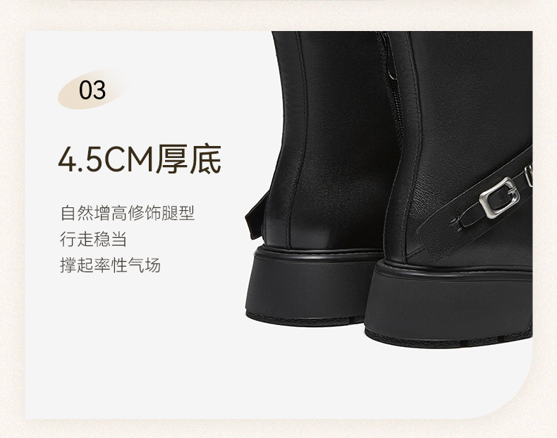 | 鞋底材质:橡胶底 | 靴筒内里材质:织物面料猪皮革 | 内增高:无 | 鞋面材质:牛皮革 | 闭合方式:侧拉链 |