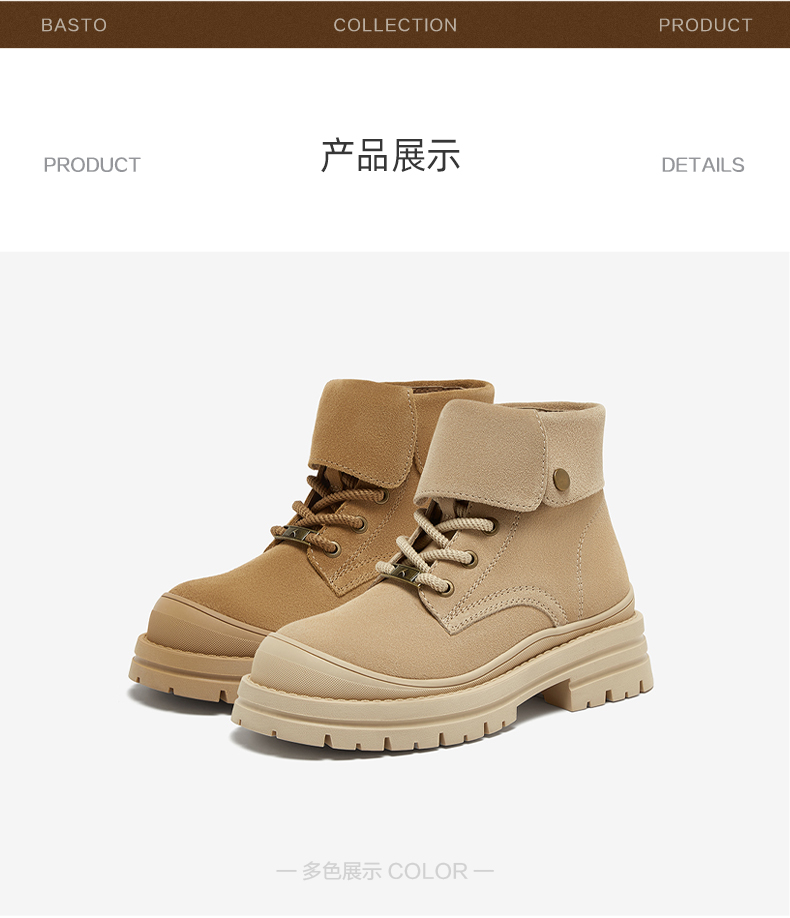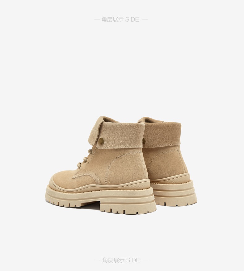| 鞋底材质:橡胶底 | 靴筒内里材质:织物面料PU革 | 内增高:无 | 鞋面材质:牛剖层皮革 | 闭合方式:系带 |