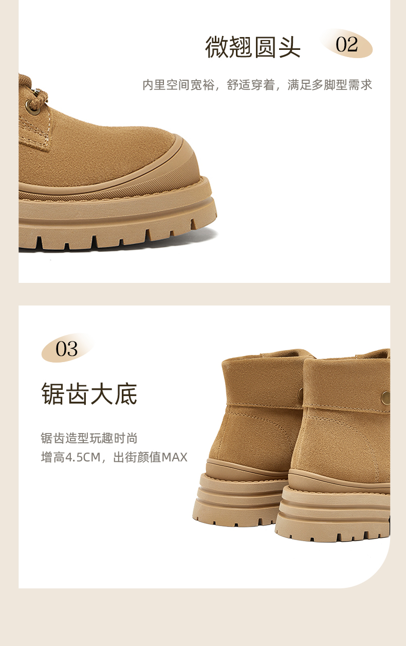 | 帮面材质:牛剖层革 | 配跟:无 | 靴筒口围:26CM | 上市时间:2024年冬季 | 鞋类流行款式:工装靴 |