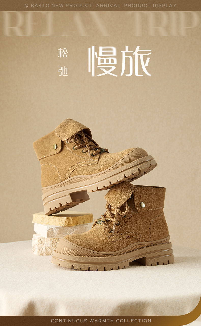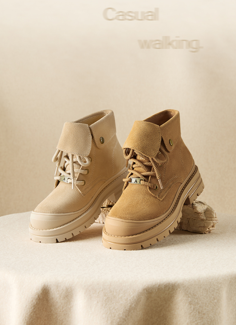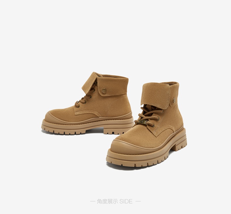 | 鞋底材质:橡胶底 | 靴筒内里材质:织物面料PU革 | 内增高:无 | 鞋面材质:牛剖层皮革 | 闭合方式:系带 |