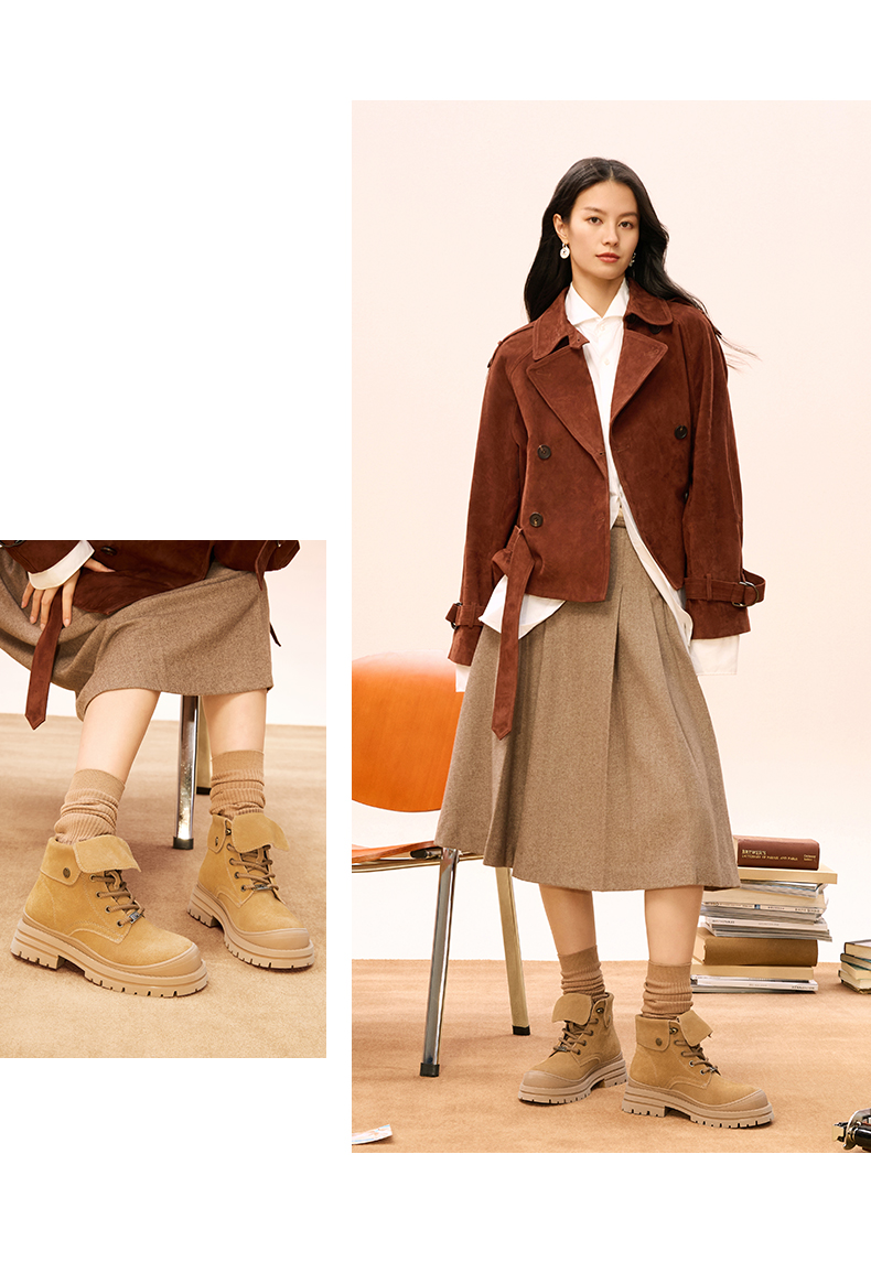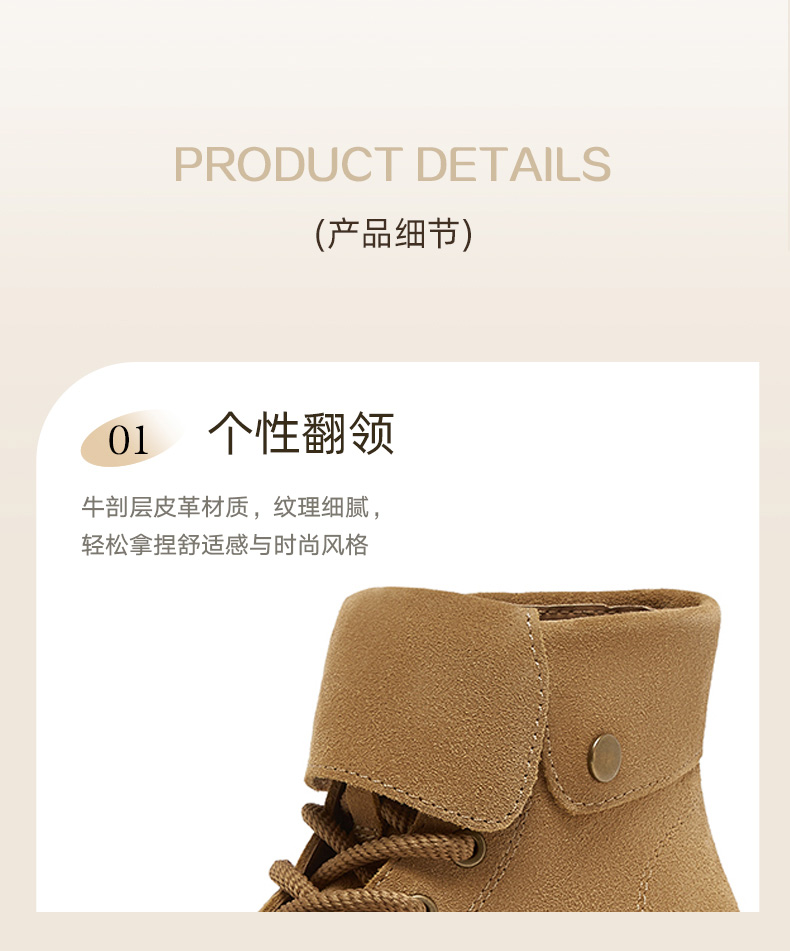 | 帮面材质:牛剖层革 | 配跟:无 | 靴筒口围:26CM | 上市时间:2024年冬季 | 鞋类流行款式:工装靴 |