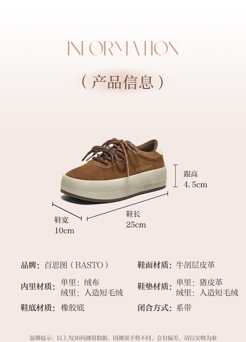 | 制鞋工艺:胶贴皮鞋 | 款式季节:春季 | 鞋垫材质:人造短毛绒 | 渠道划分:电商专销 | 前掌高度:4CM |