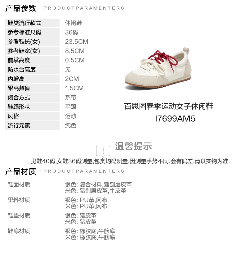 | 流行元素:纯色 | 参考鞋长(女):23.5CM | 参考鞋宽(女):8.5CM | 风格:运动 | 年份:2025年 |