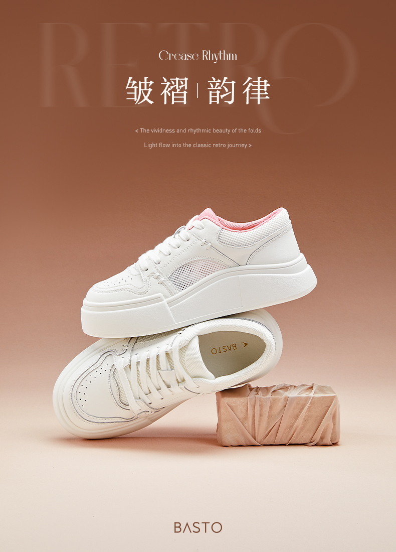 BASTO(百思图),品牌拥有17年历史,秉承优雅、甜美、清新的设计理念,主张“好嫁风”的产品风格,将甜美俏丽的少女情怀融合优雅气质的时尚品味,塑造出唯美优雅、受欢迎的女鞋款式。主打以女性温柔与亲和力为特色的流行时尚产品,糅合雅致又富有亲和力的裸粉色调,淑媛端庄、清新甜美。目前品牌已开设线下门店达1400多家。