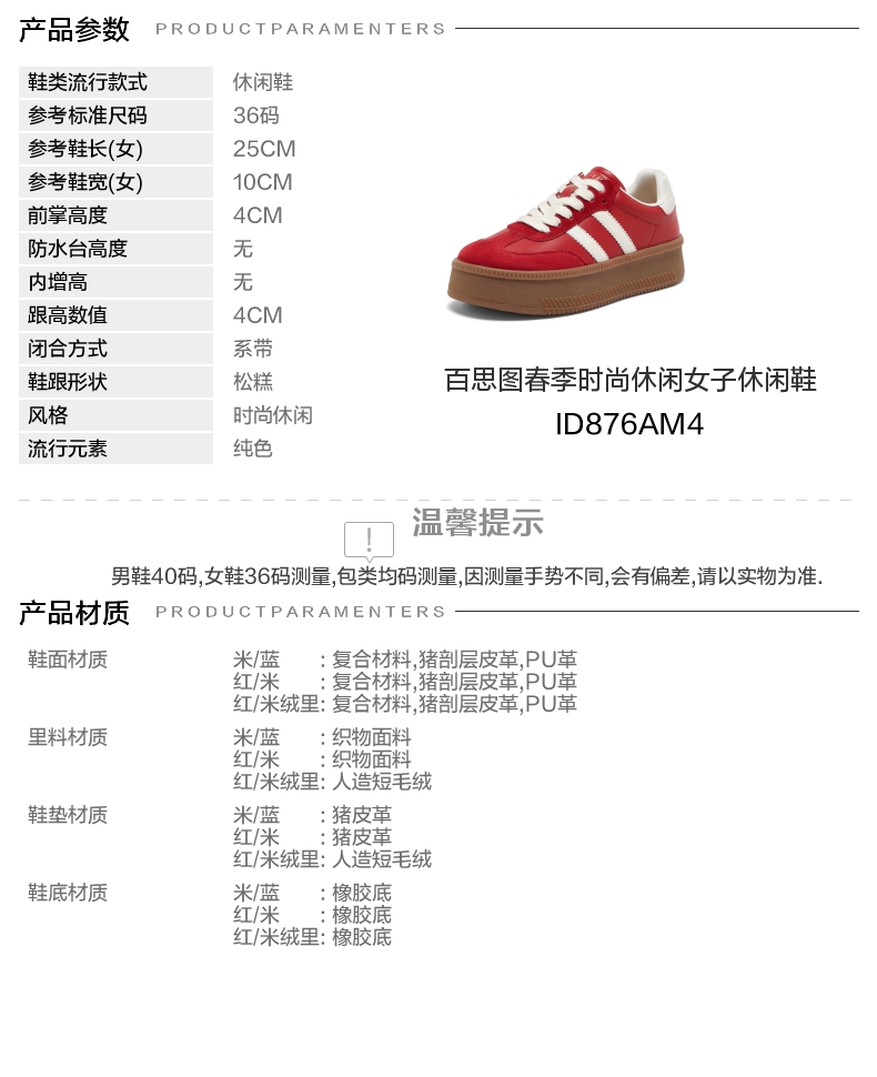 | 前掌高度:4CM | 皮质特征:无 | 防水台高度:无 | 销售季:2024年春季 |
