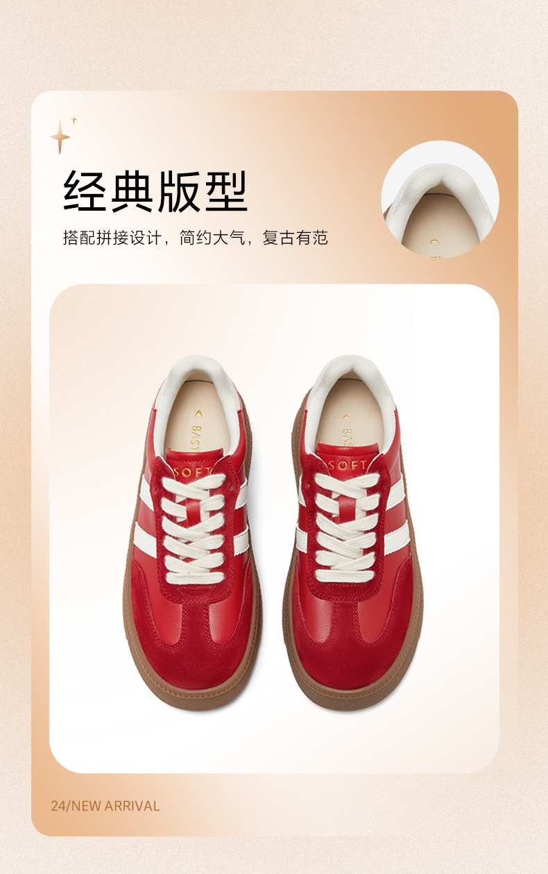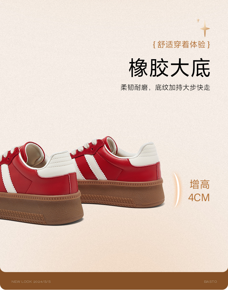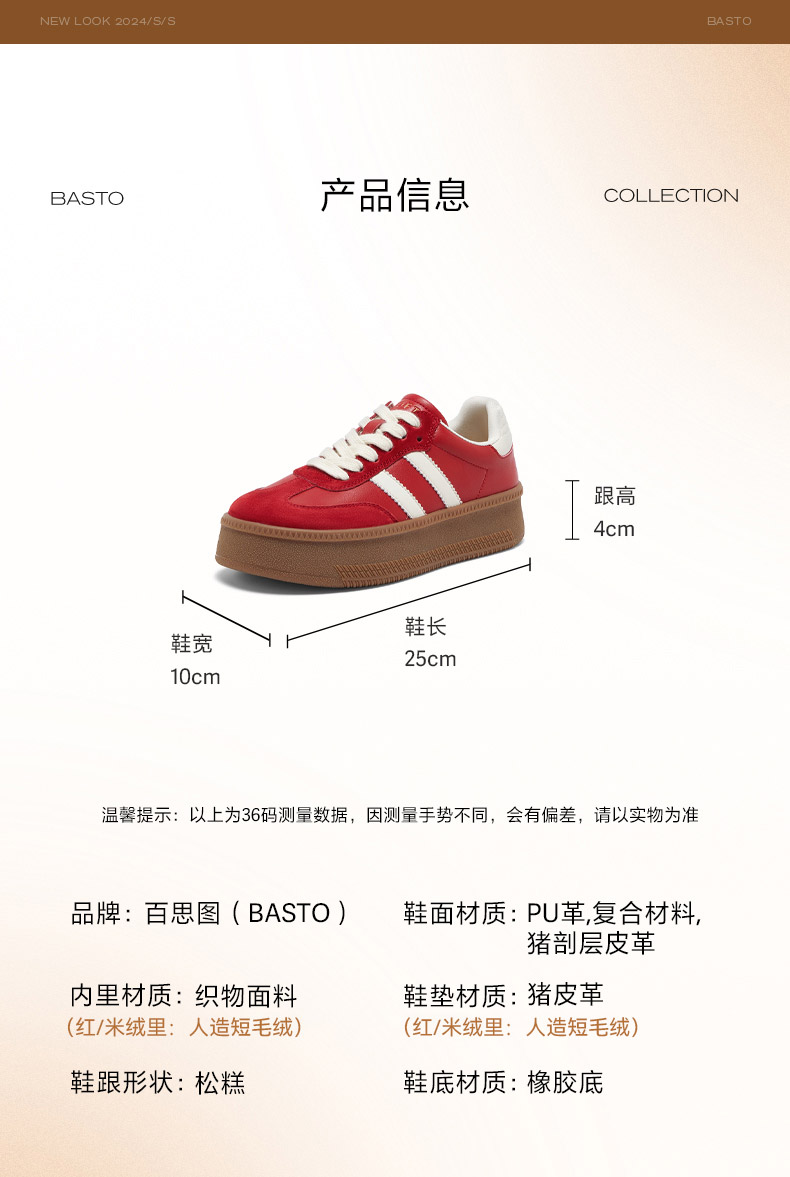 BASTO(百思图),品牌拥有17年历史,秉承优雅、甜美、清新的设计理念,主张“好嫁风”的产品风格,将甜美俏丽的少女情怀融合优雅气质的时尚品味,塑造出唯美优雅、受欢迎的女鞋款式。主打以女性温柔与亲和力为特色的流行时尚产品,糅合雅致又富有亲和力的裸粉色调,淑媛端庄、清新甜美。目前品牌已开设线下门店达1400多家。