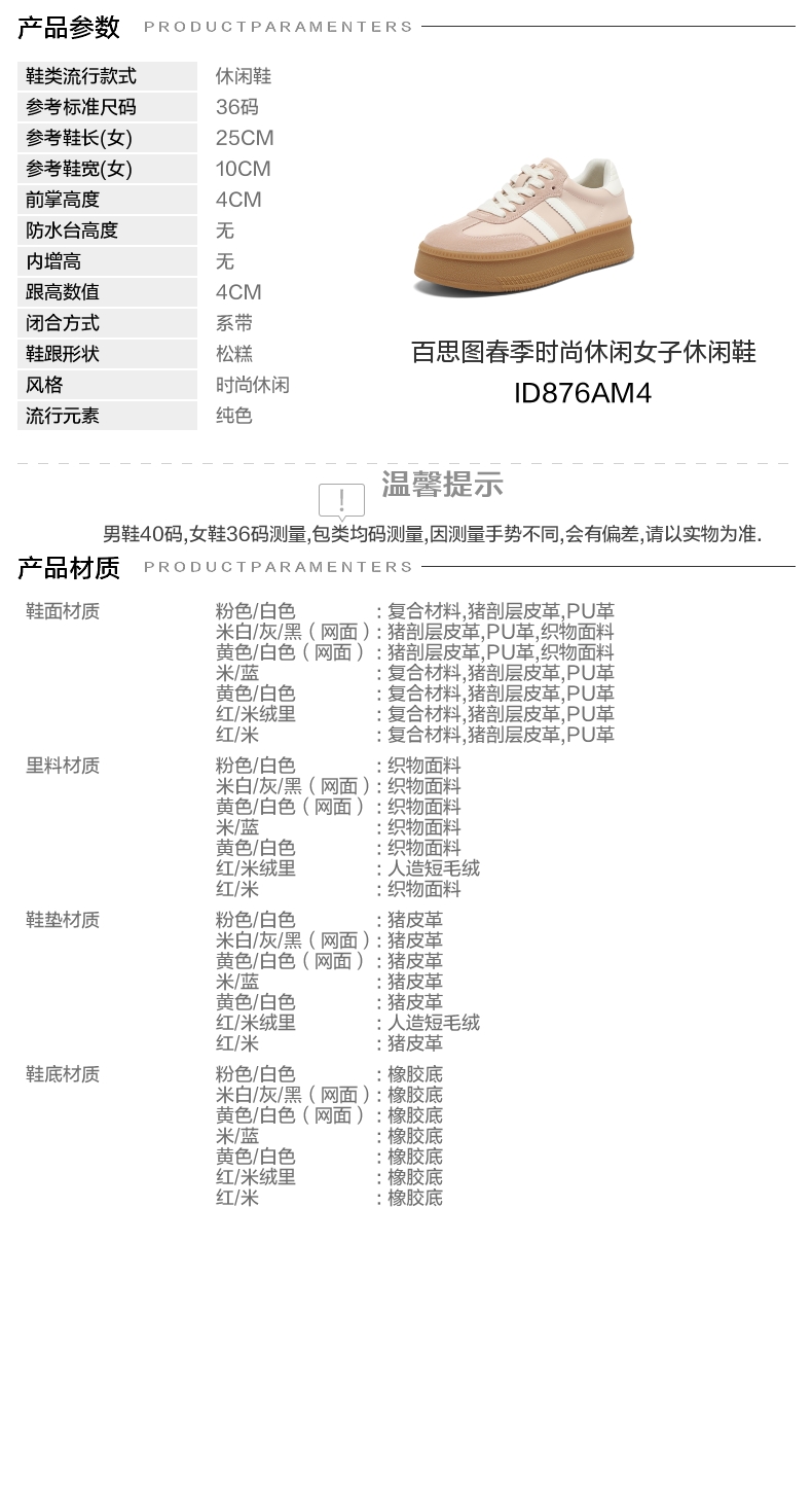 | 鞋垫材质:猪皮革 | 款式季节:春季 | 前掌高度:4CM | 皮质特征:无 | 防水台高度:无 |