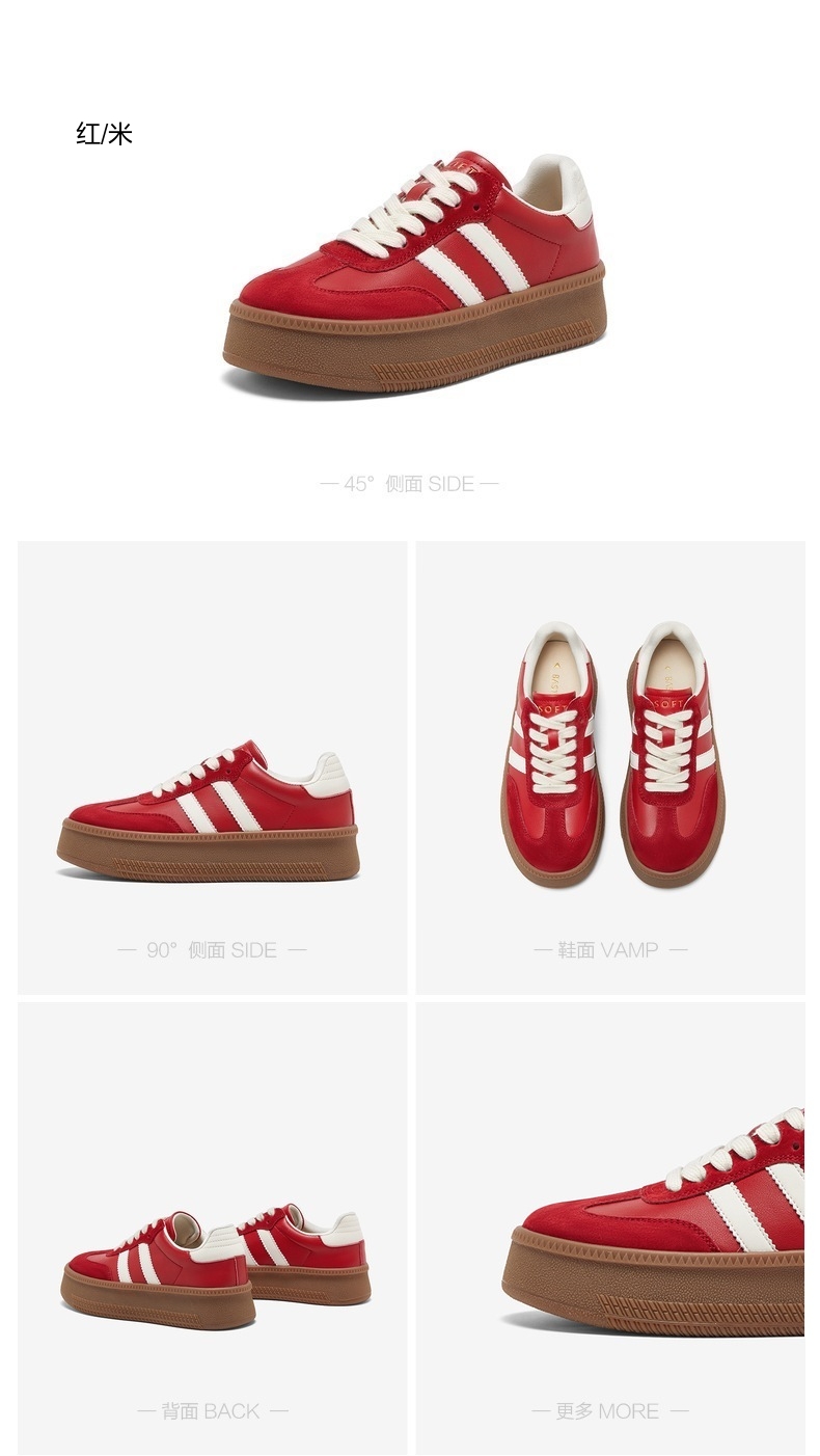 | 鞋帮:低帮 | 鞋底材质:橡胶底 | 内增高:无 | 鞋面材质:PU革猪剖层皮革复合材料 | 闭合方式:系带 |