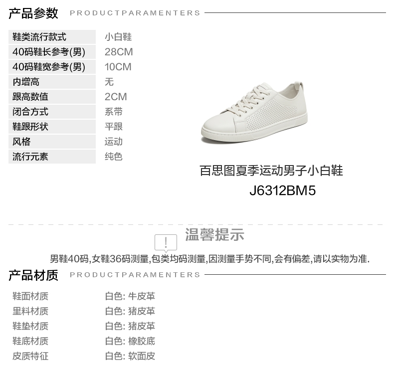 | 风格:运动 | 色系:白色 | 跟高数值:2CM | 40码鞋宽参考(男):10CM | 性别:男子 |