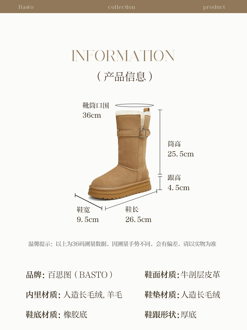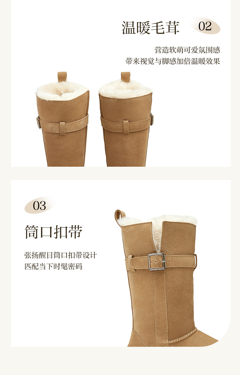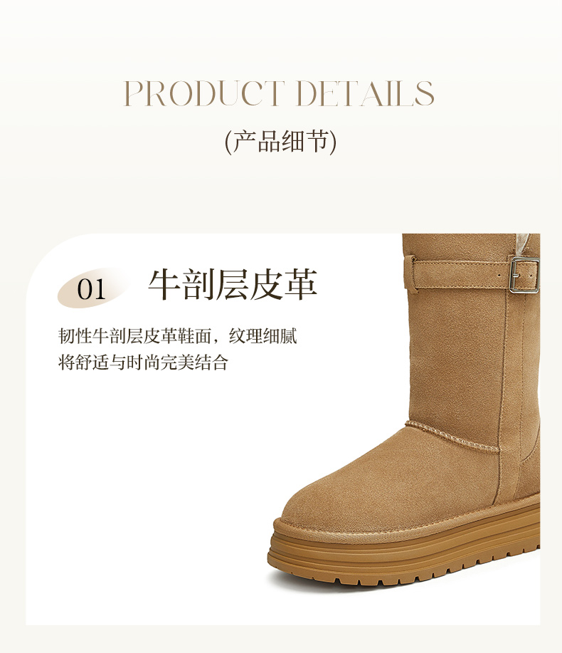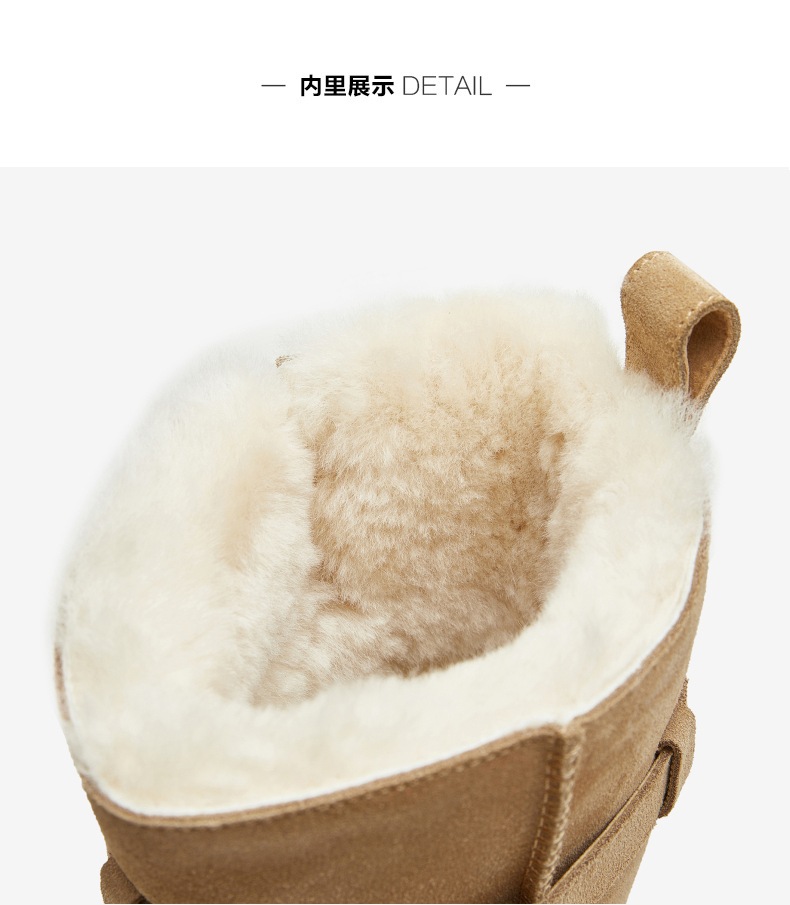 | 功能科技:防滑 | 鞋底材质:橡胶底 | 靴筒内里材质:羊毛人造长毛绒 | 内增高:无 | 鞋面材质:牛剖层皮革 |
