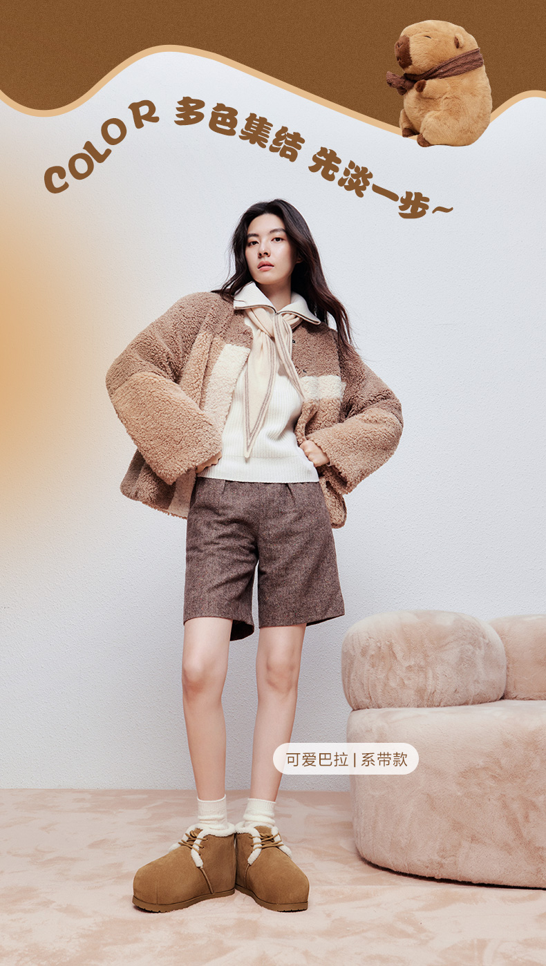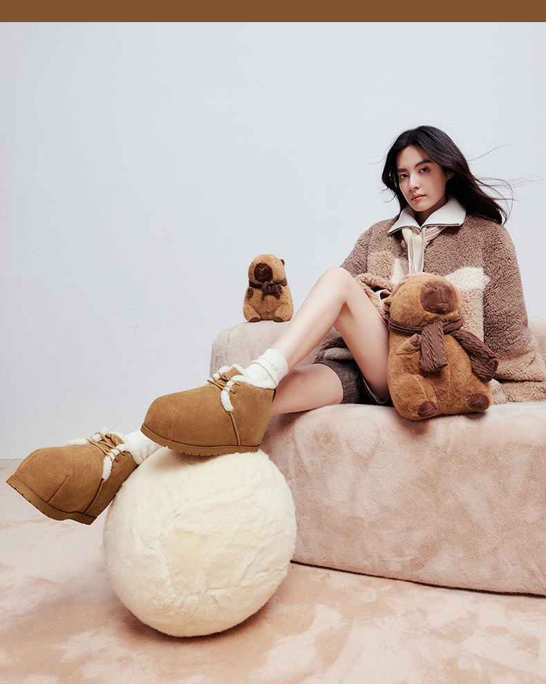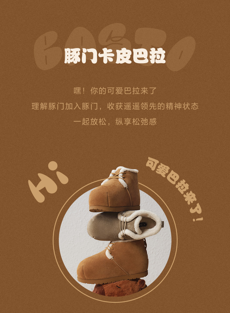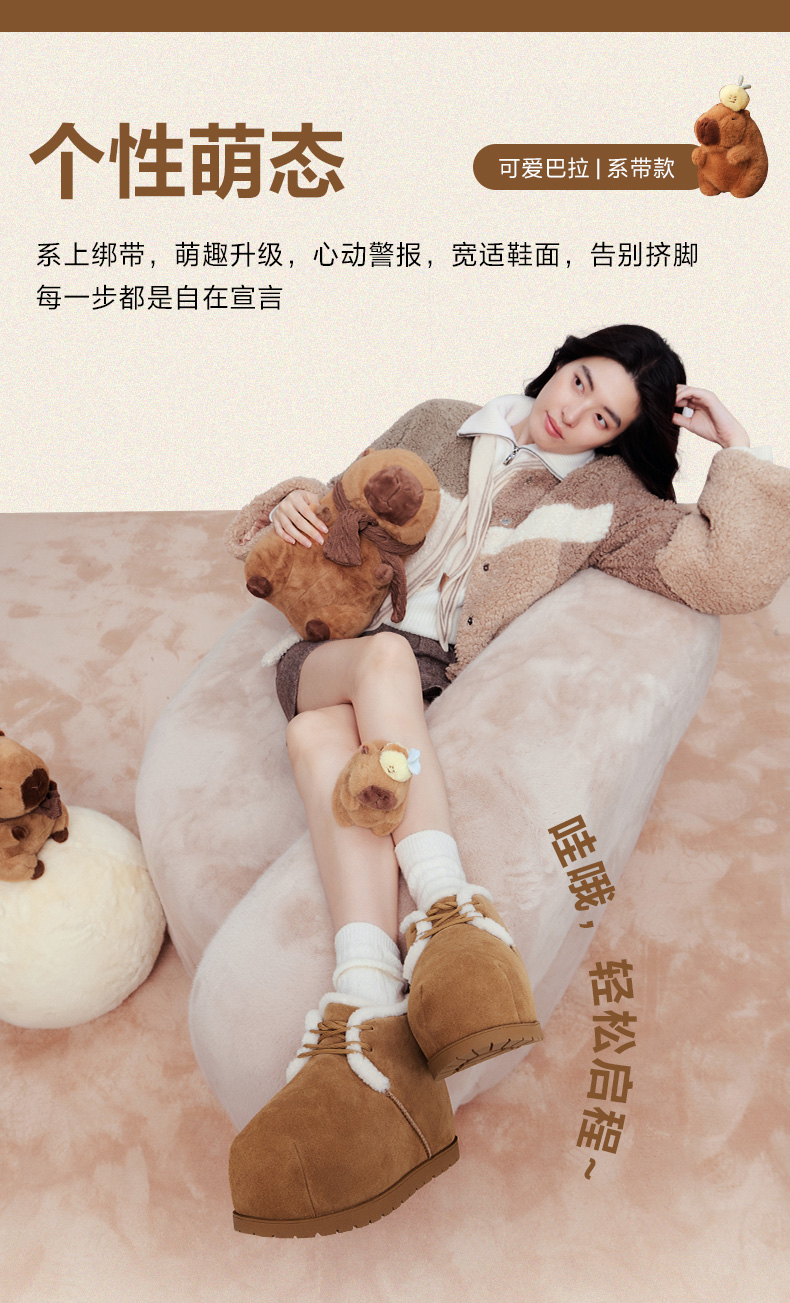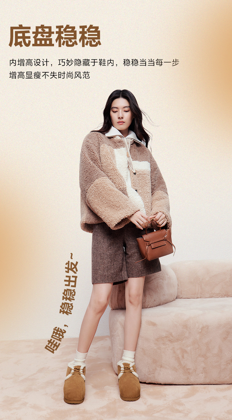 | 鞋类流行款式:雪地靴 | 鞋头款式:圆头 | 执行标准:舒适上班鞋Q/LR001-2023 | 跟高范围:低跟鞋(小于3CM) | 鞋面图案:纯色 |