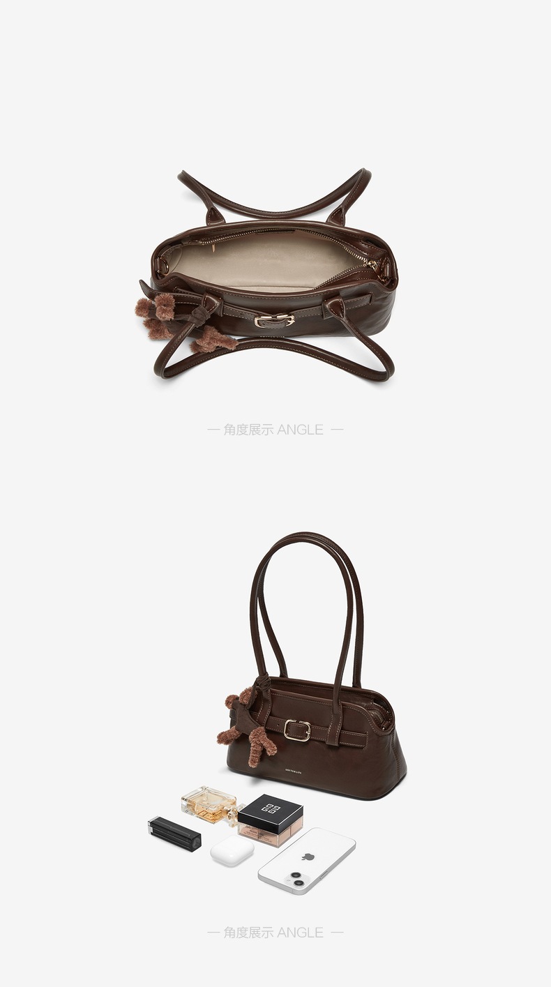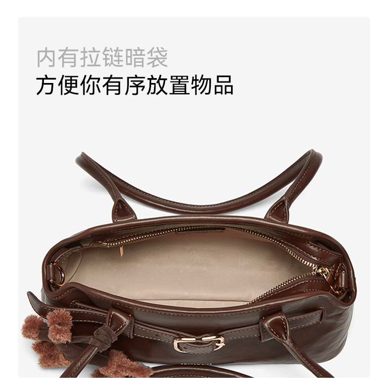 | 包的规格:W300*H150*D110MM | 内部结构:拉链暗袋 | 背带方式:单肩/斜挎 | 风格:OL通勤 | 色系:咖啡色 |
