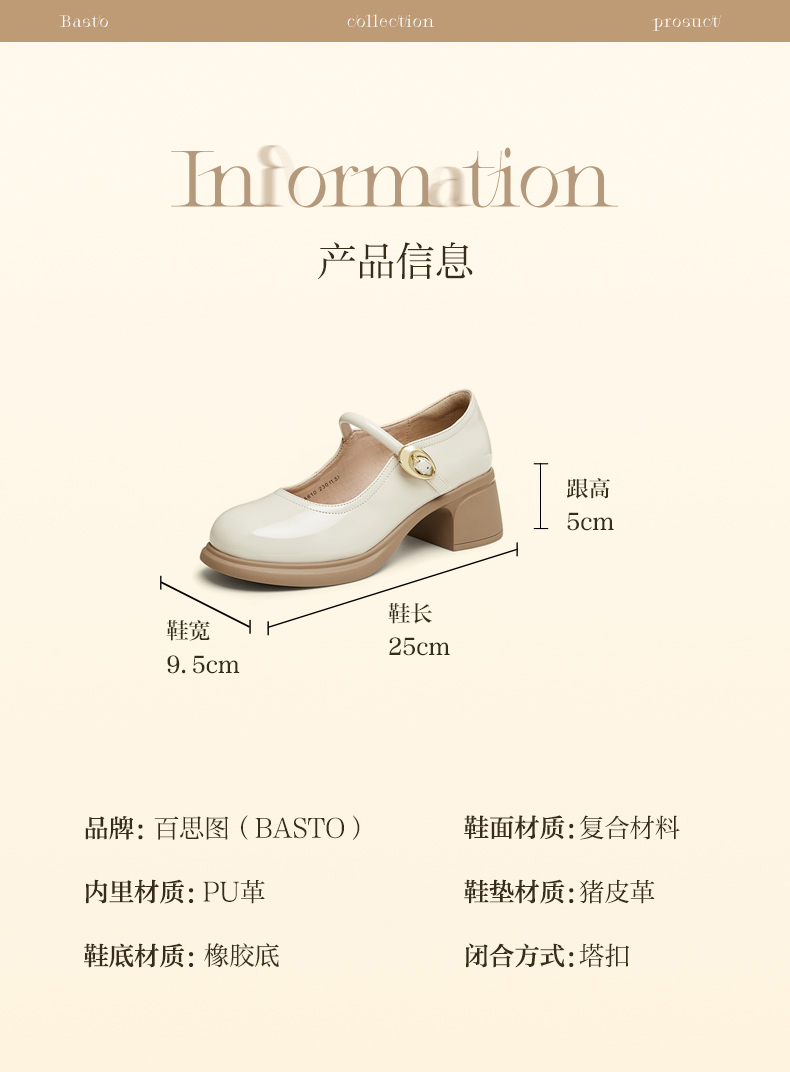 BASTO(百思图),品牌拥有17年历史,秉承优雅、甜美、清新的设计理念,主张“好嫁风”的产品风格,将甜美俏丽的少女情怀融合优雅气质的时尚品味,塑造出唯美优雅、受欢迎的女鞋款式。主打以女性温柔与亲和力为特色的流行时尚产品,糅合雅致又富有亲和力的裸粉色调,淑媛端庄、清新甜美。目前品牌已开设线下门店达1400多家。