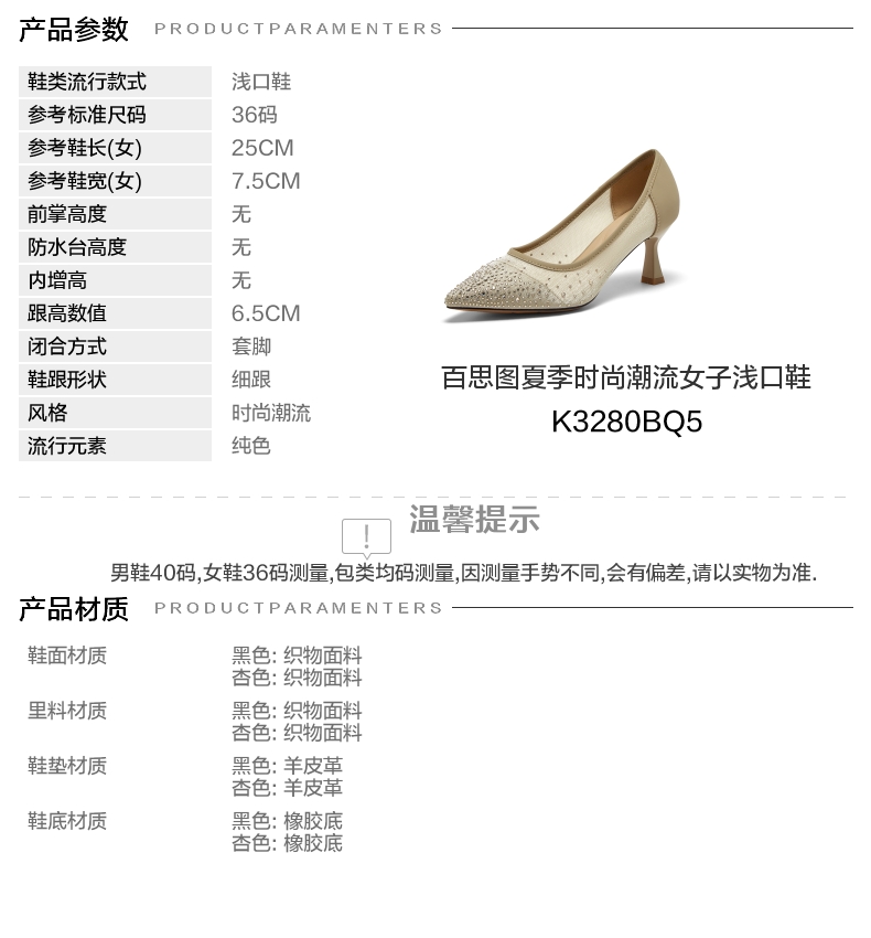 BASTO(百思图),品牌拥有17年历史,秉承优雅、甜美、清新的设计理念,主张“好嫁风”的产品风格,将甜美俏丽的少女情怀融合优雅气质的时尚品味,塑造出唯美优雅、受欢迎的女鞋款式。主打以女性温柔与亲和力为特色的流行时尚产品,糅合雅致又富有亲和力的裸粉色调,淑媛端庄、清新甜美。目前品牌已开设线下门店达1400多家。