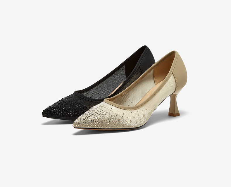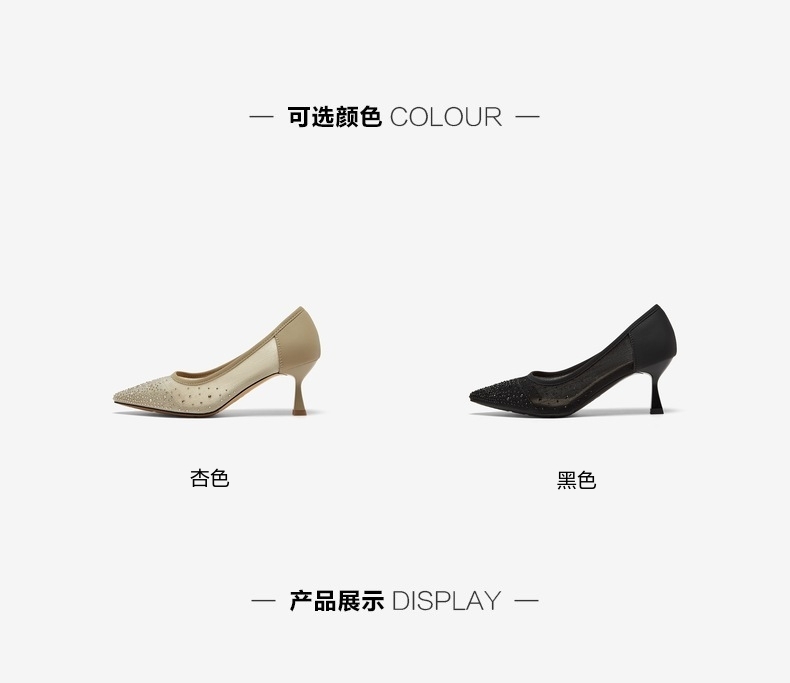 | 鞋头款式:尖头 | 鞋底材质:橡胶底 | 鞋面图案:纯色 | 内增高:无 | 鞋跟形状:细跟 |
