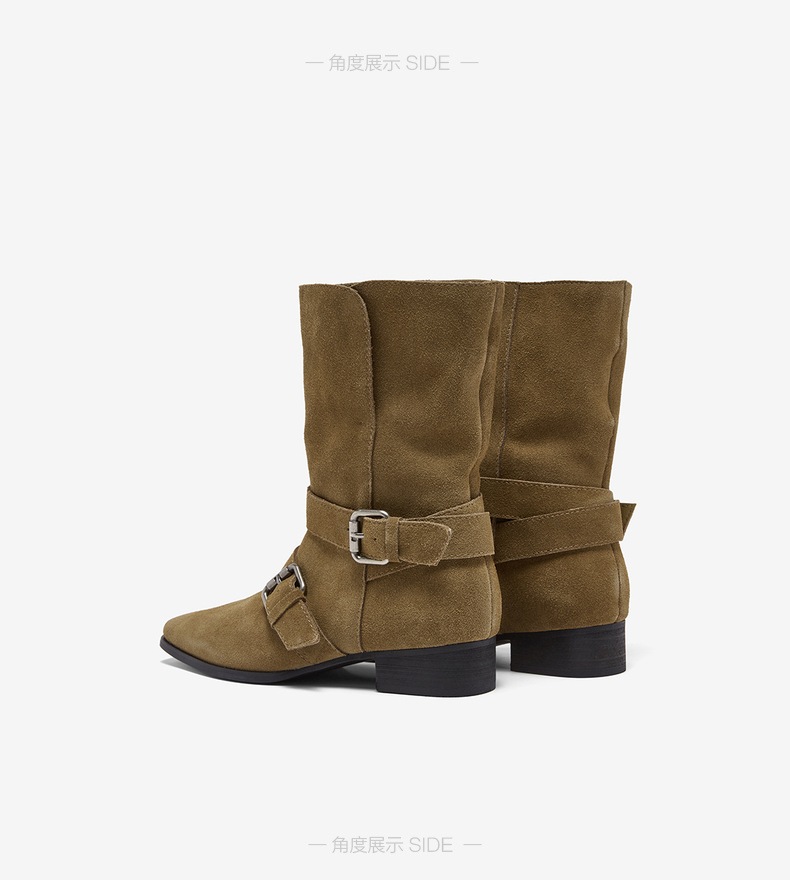 | 鞋底材质:橡胶底 | 靴筒内里材质:织物面料 | 内增高:无 | 鞋面材质:牛剖层皮革 | 闭合方式:搭扣 |