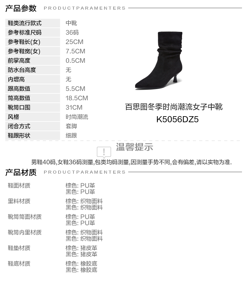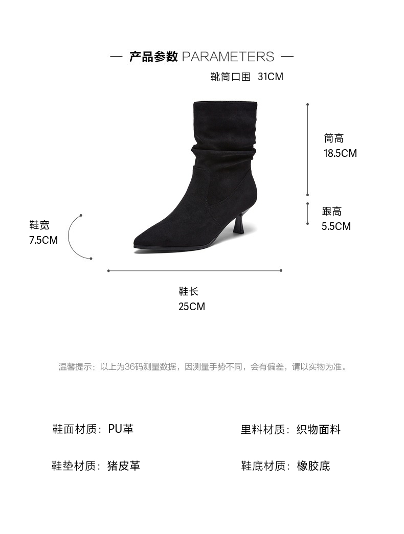 | 配跟:无 | 靴筒口围:31CM | 上市时间:2025年冬季 | 鞋类流行款式:中靴 | 鞋头款式:尖头 |