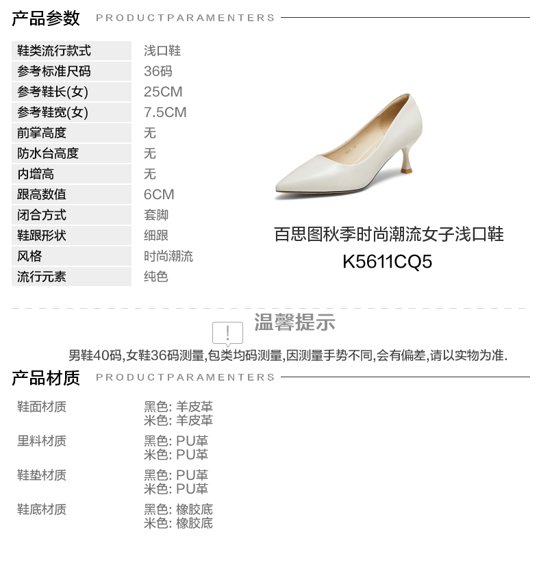 | 鞋头款式:尖头 | 鞋底材质:橡胶底 | 鞋面图案:纯色 | 内增高:无 | 鞋跟形状:细跟 |