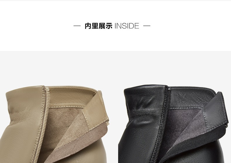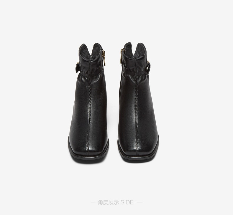 | 鞋底材质:TPU | 靴筒内里材质:猪皮革织物面料 | 内增高:无 | 鞋面材质:羊皮革 | 闭合方式:侧拉链 |